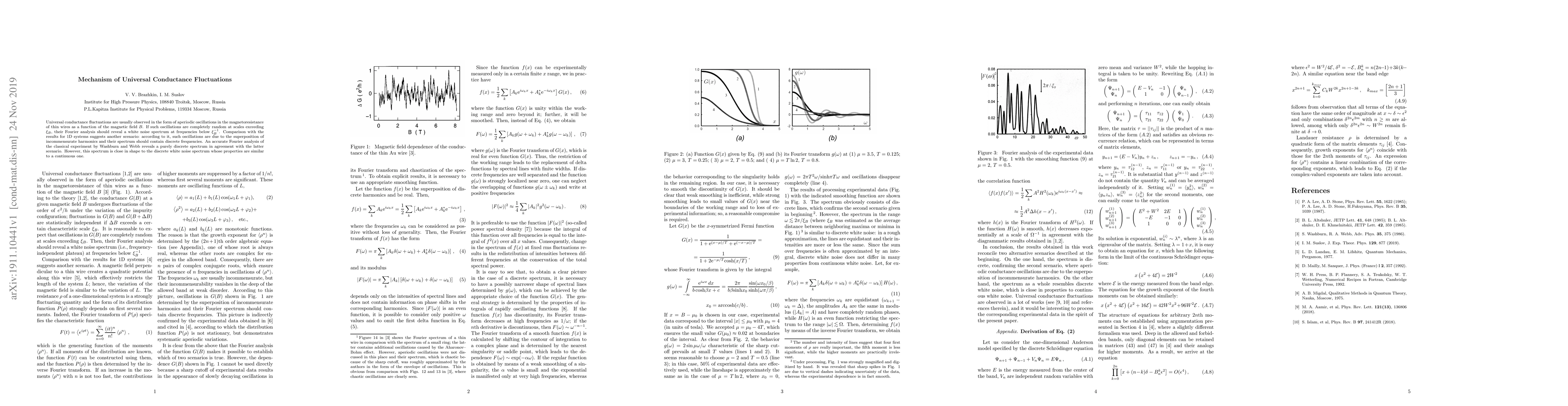 Universal conductance fluctuations are usually observed in the form of aperiodic oscillations in the magnetoresistance of thin wires as a function of the magnetic field B. If such oscillations are completely random at scales exceeding \xi_B, their Fourier analysis should reveal a white noise spectrum at frequencies below \xi_B^{-1}. Comparison with the results for 1D systems suggests another scenario: according to it, such oscillations are due to the superposition of incommensurate harmonics and their spectrum should contain discrete frequencies. An accurate Fourier analysis of the classical experiment by Washburn and Webb reveals a purely discrete spectrum in agreement with the latter scenario. However, this spectrum is close in shape to the discrete white noise spectrum whose properties are similar to a continuous one.