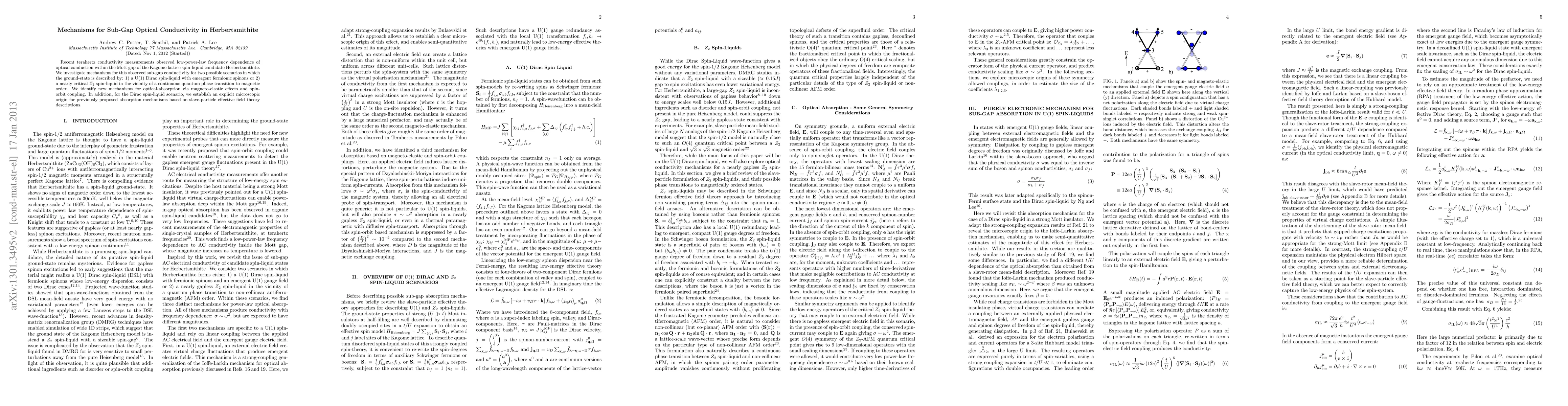 This paper explores the mechanisms behind the observed sub-gap optical conductivity in Herbertsmithite, a Kagome lattice spin-liquid candidate, under two ground-state scenarios: a U(1) Dirac spin-liquid and a nearly critical Z2 spin-liquid. It identifies new mechanisms involving magneto-elastic effects and spin-orbit coupling, and clarifies the microscopic origins of these effects in the Dirac spin-liquid scenario.