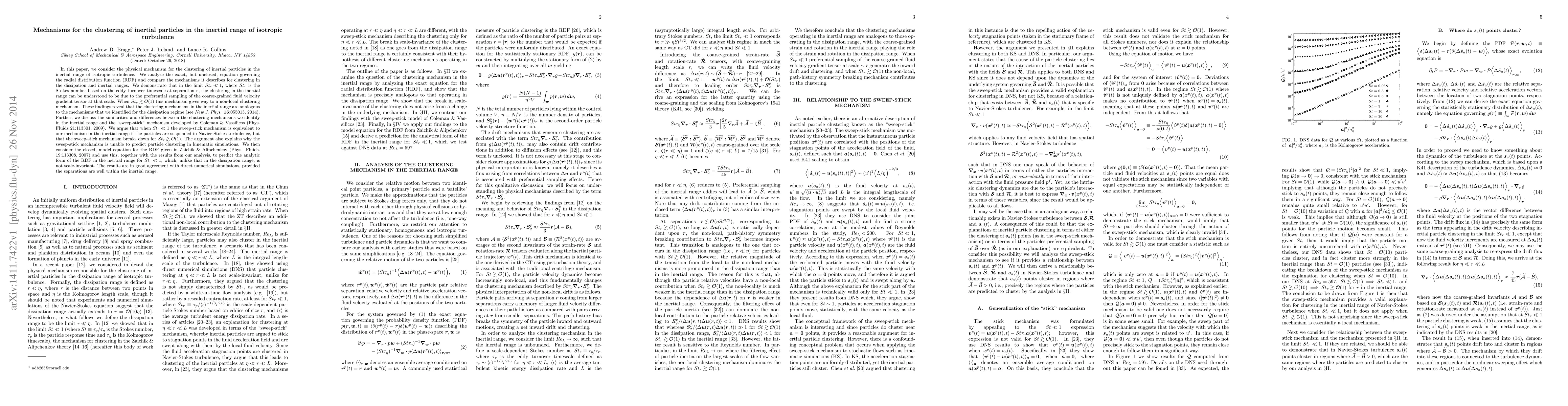 This paper investigates the mechanisms behind inertial particle clustering in the inertial range of isotropic turbulence, showing that clustering is due to preferential sampling of the fluid velocity gradient tensor when the Stokes number is small. It contrasts this with a non-local mechanism for larger Stokes numbers and discusses the similarities and differences with the "sweep-stick" mechanism, concluding that the latter breaks down for larger Stokes numbers.