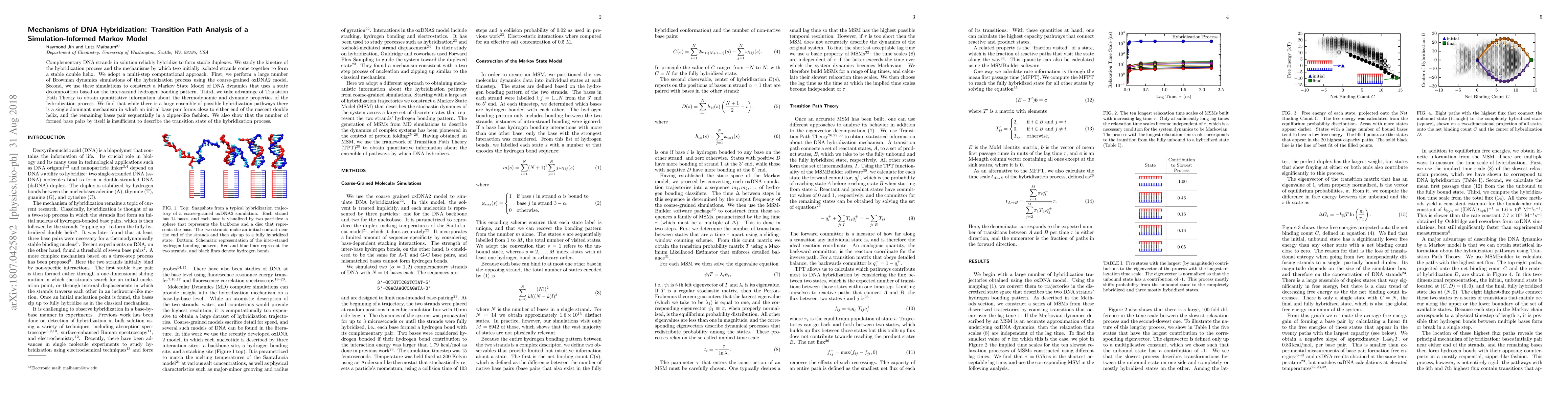 Complementary DNA strands in solution reliably hybridize to form stable duplexes. We study the kinetics of the hybridization process and the mechanisms by which two initially isolated strands come together to form a stable double helix. We adopt a multi-step computational approach. First, we perform a large number of Brownian dynamics simulations of the hybridization process using the coarse-grained oxDNA2 model. Second, we use these simulations to construct a Markov State Model of DNA dynamics that uses a state decomposition based on the inter-strand hydrogen bonding pattern. Third, we take advantage of Transition Path Theory to obtain quantitative information about the thermodynamic and dynamic properties of the hybridization process. We find that while there is a large ensemble of possible hybridization pathways there is a single dominant mechanism in which an initial base pair forms close to either end of the nascent double helix, and the remaining bases pair sequentially in a zipper-like fashion. We also show that the number of formed base pairs by itself is insufficient to describe the transition state of the hybridization process.