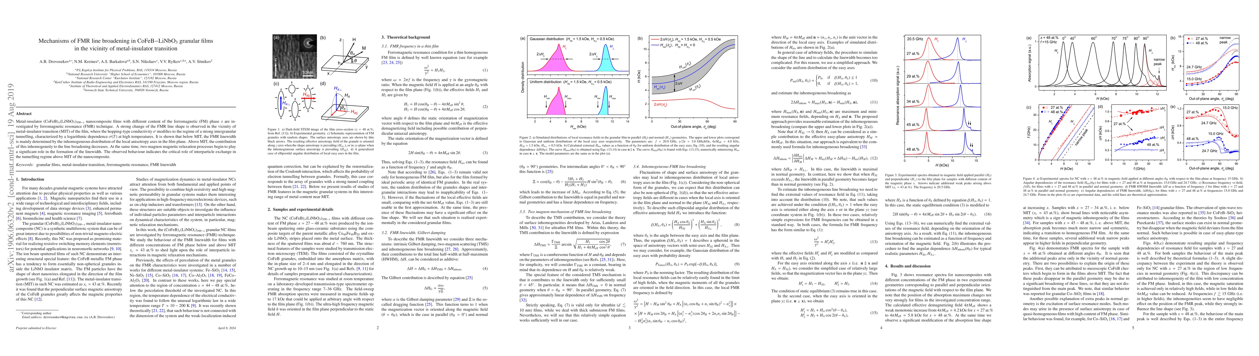 This paper investigates the ferromagnetic resonance (FMR) line broadening in CoFeB-LiNbO$_3$ nanocomposite films near the metal-insulator transition. Below the transition, inhomogeneity in local anisotropy dominates FMR linewidth, while above it, two-magnon relaxation and intergranular tunnelling become critical.