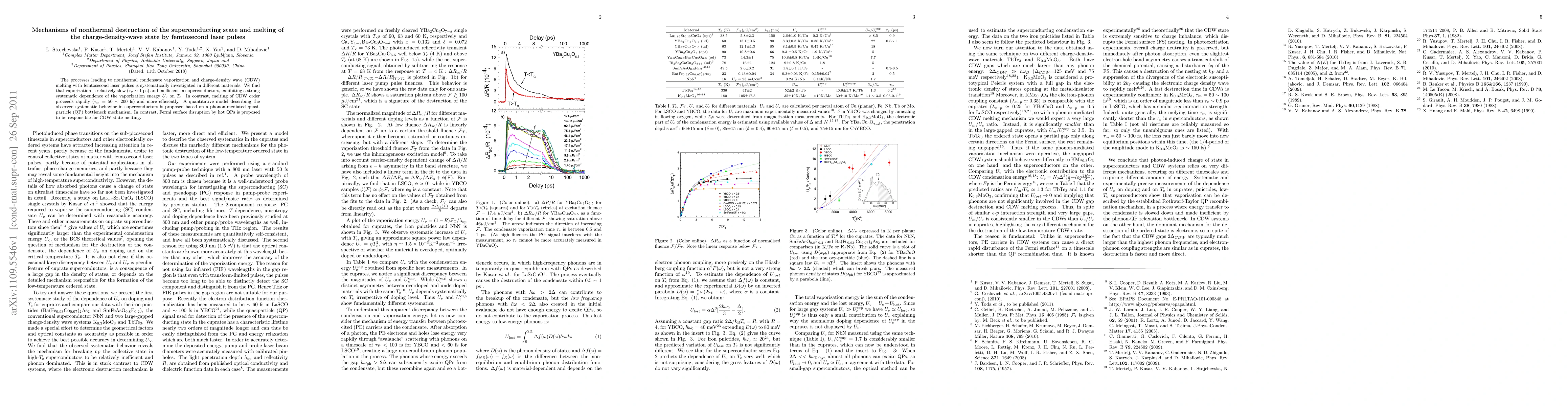 This paper investigates the nonthermal destruction of superconductivity and charge-density-wave states using femtosecond laser pulses, revealing that while superconductor vaporization is slow and dependent on critical temperature, charge-density-wave melting occurs rapidly via phonon-mediated quasi-particle mechanisms and hot quasi-particle disruption.