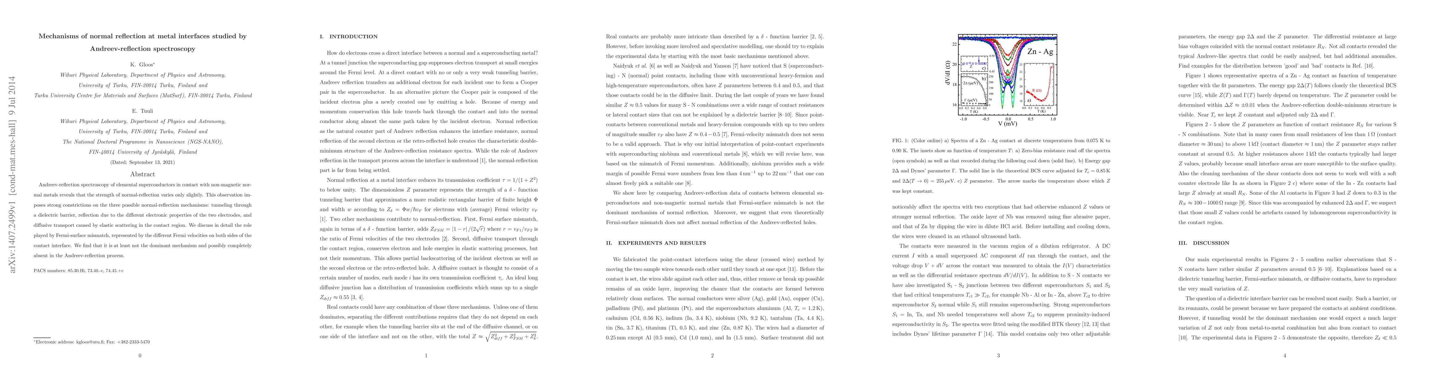 This study uses Andreev-reflection spectroscopy to investigate normal reflection at metal interfaces, finding that the strength of normal reflection varies only slightly. The research concludes that Fermi-surface mismatch is not the dominant mechanism for normal reflection, suggesting that other factors like tunneling or diffusive transport play a more significant role.