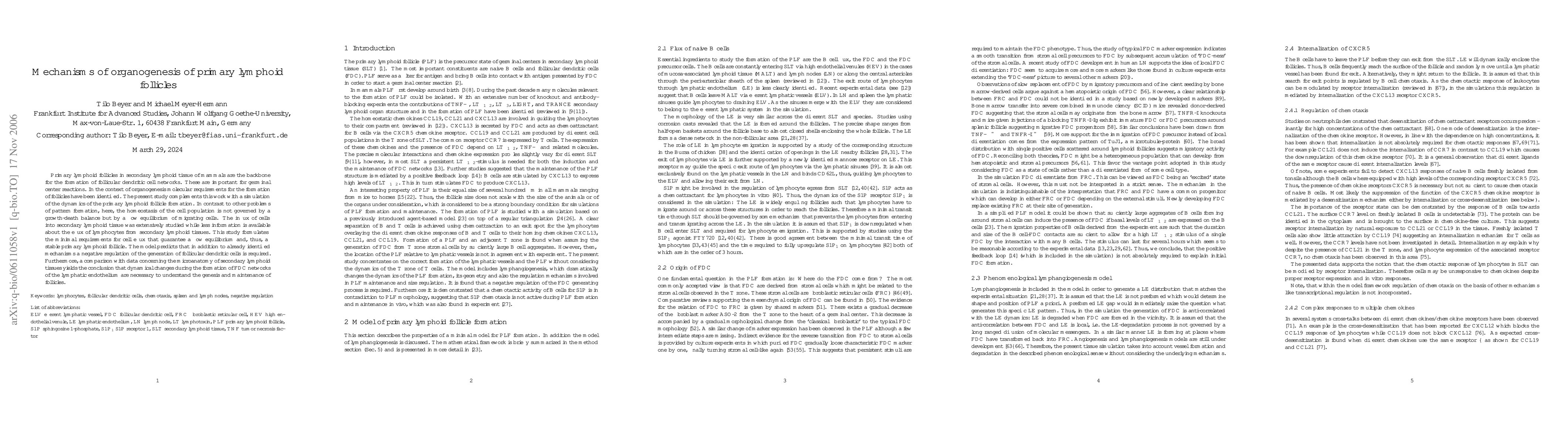 Researchers studied the formation of primary lymphoid follicles in secondary lymphoid tissue, identifying key requirements for cell flow equilibrium and a negative regulation mechanism for follicular dendritic cells.