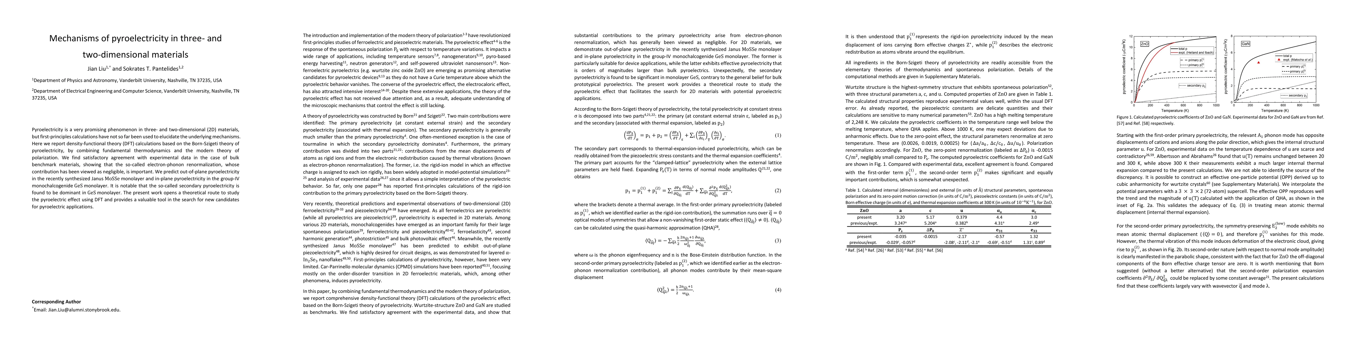 Researchers used density-functional theory to study pyroelectricity in 2D materials, finding that electron-phonon renormalization is a significant contributor to the phenomenon and predicting potential applications for new materials like Janus MoSSe and GeS monolayers.