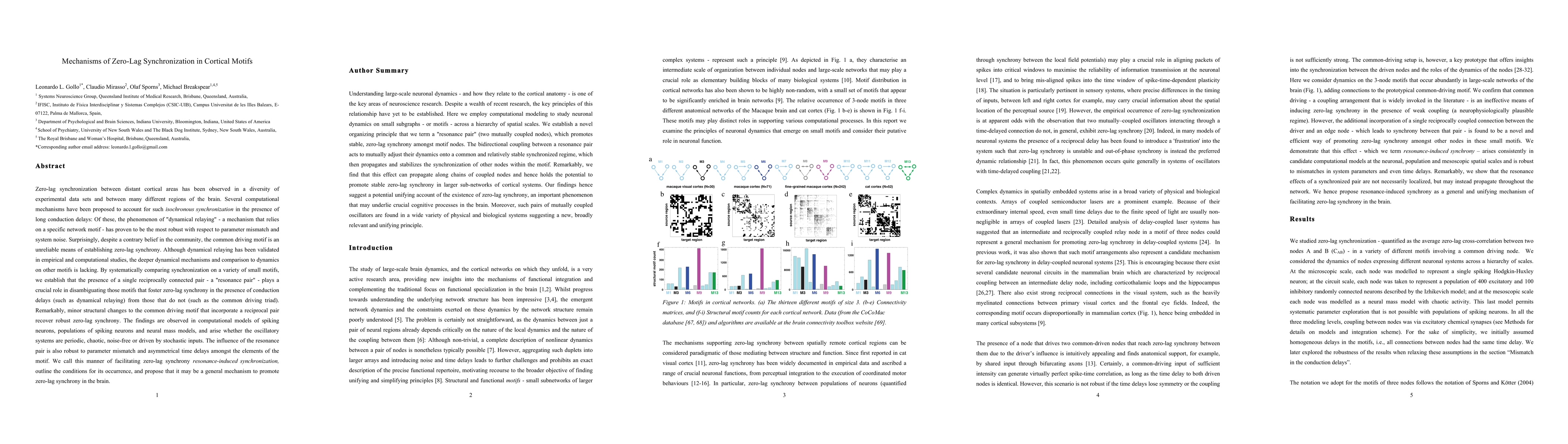 This paper investigates the mechanisms behind zero-lag synchronization in cortical areas, identifying "dynamical relaying" as a robust mechanism. It reveals that a "resonance pair" within network motifs is crucial for achieving zero-lag synchronization despite conduction delays, and minor structural changes to common motifs can restore this synchronization.