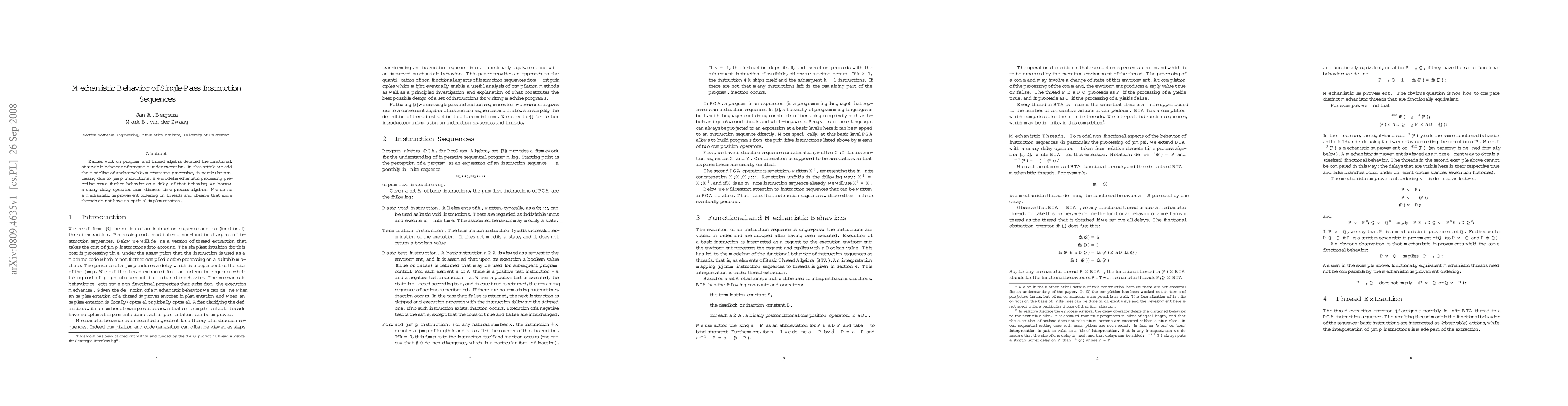 Earlier work on program and thread algebra detailed the functional, observable behavior of programs under execution. In this article we add the modeling of unobservable, mechanistic processing, in particular processing due to jump instructions. We model mechanistic processing preceding some further behavior as a delay of that behavior; we borrow a unary delay operator from discrete time process algebra. We define a mechanistic improvement ordering on threads and observe that some threads do not have an optimal implementation.