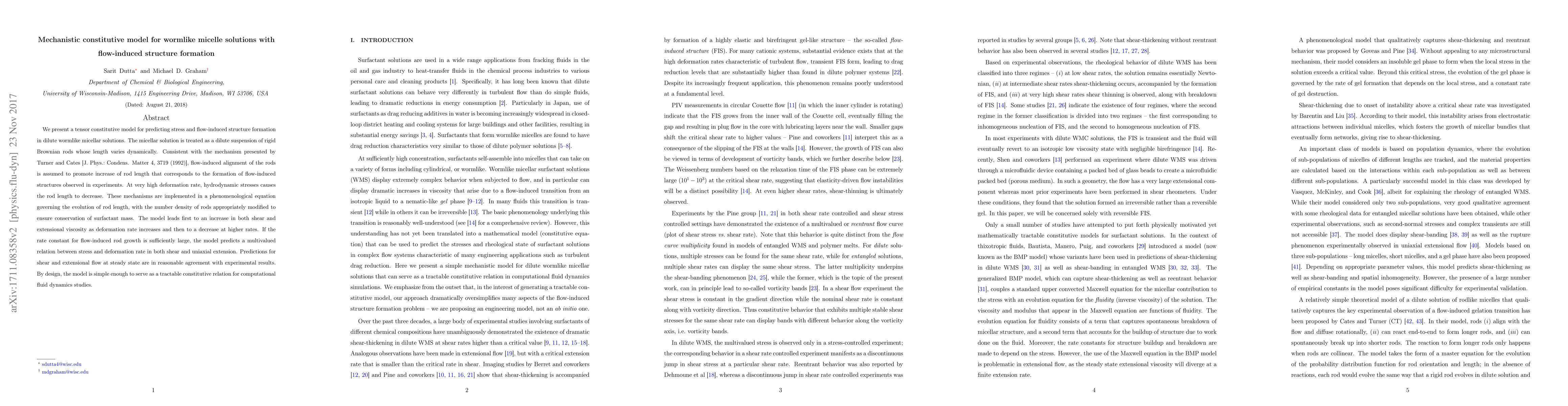 This paper proposes a tensor constitutive model to predict stress and flow-induced structure formation in wormlike micellar solutions, treating them as suspensions of dynamically varying rigid Brownian rods. The model captures the flow-induced rod alignment and length changes, leading to an increase and subsequent decrease in viscosity at high deformation rates, and predicts multivalued stress-deformation relations.