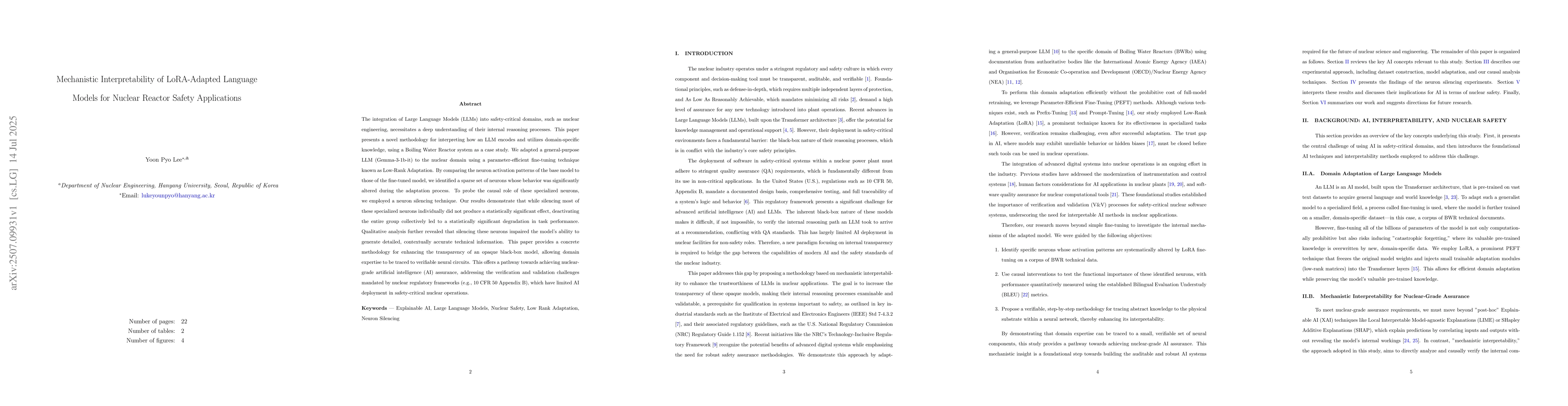 The integration of Large Language Models (LLMs) into safety-critical domains, such as nuclear engineering, necessitates a deep understanding of their internal reasoning processes. This paper presents a novel methodology for interpreting how an LLM encodes and utilizes domain-specific knowledge, using a Boiling Water Reactor system as a case study. We adapted a general-purpose LLM (Gemma-3-1b-it) to the nuclear domain using a parameter-efficient fine-tuning technique known as Low-Rank Adaptation. By comparing the neuron activation patterns of the base model to those of the fine-tuned model, we identified a sparse set of neurons whose behavior was significantly altered during the adaptation process. To probe the causal role of these specialized neurons, we employed a neuron silencing technique. Our results demonstrate that while silencing most of these specialized neurons individually did not produce a statistically significant effect, deactivating the entire group collectively led to a statistically significant degradation in task performance. Qualitative analysis further revealed that silencing these neurons impaired the model's ability to generate detailed, contextually accurate technical information. This paper provides a concrete methodology for enhancing the transparency of an opaque black-box model, allowing domain expertise to be traced to verifiable neural circuits. This offers a pathway towards achieving nuclear-grade artificial intelligence (AI) assurance, addressing the verification and validation challenges mandated by nuclear regulatory frameworks (e.g., 10 CFR 50 Appendix B), which have limited AI deployment in safety-critical nuclear operations.