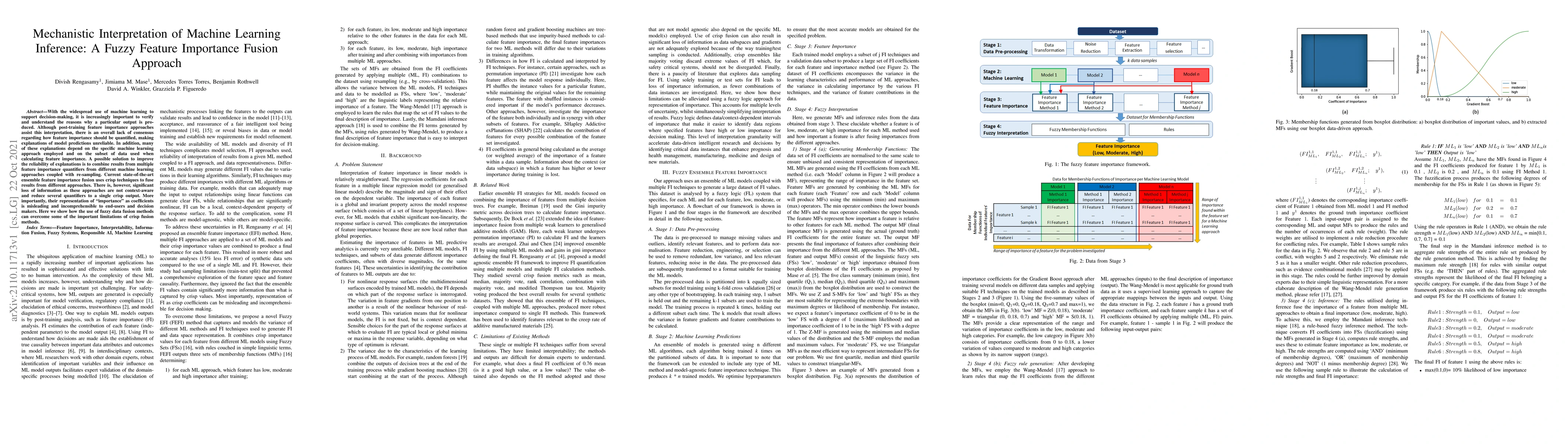This paper proposes a fuzzy feature importance fusion approach to enhance the interpretability of machine learning models by combining results from multiple feature importance quantifiers, addressing the limitations of crisp fusion methods that lose context and provide misleading importance coefficients.