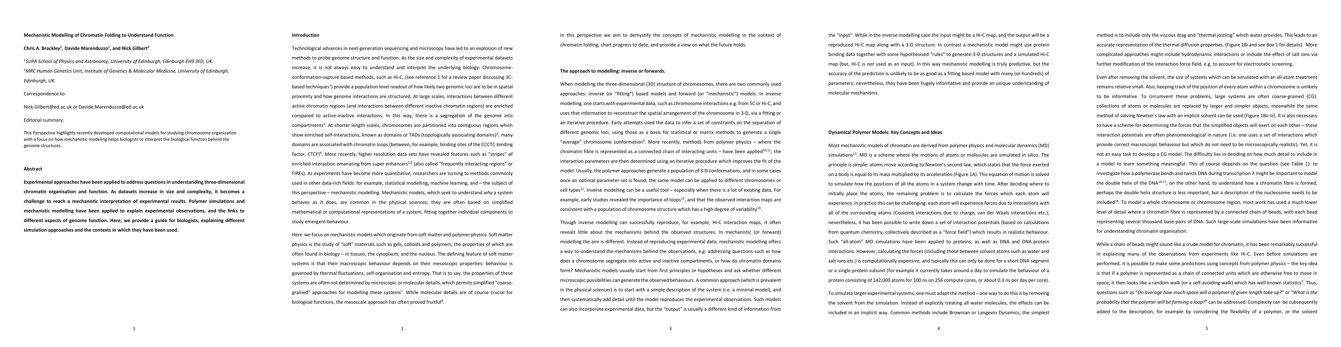 Experimental approaches have been applied to address questions in understanding three-dimensional chromatin organisation and function. As datasets increase in size and complexity, it becomes a challenge to reach a mechanistic interpretation of experimental results. Polymer simulations and mechanistic modelling have been applied to explain experimental observations, and the links to different aspects of genome function. Here, we provide a guide for biologists, explaining different simulation approaches and the contexts in which they have been used.