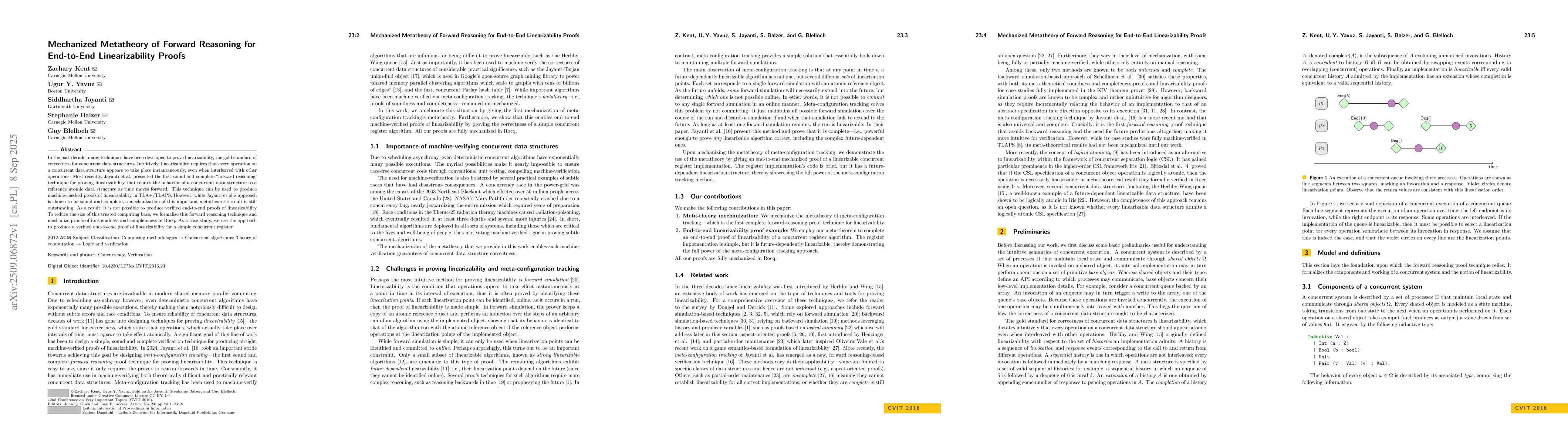 In the past decade, many techniques have been developed to prove linearizability, the gold standard of correctness for concurrent data structures. Intuitively, linearizability requires that every operation on a concurrent data structure appears to take place instantaneously, even when interleaved with other operations. Most recently, Jayanti et al. presented the first sound and complete "forward reasoning" technique for proving linearizability that relates the behavior of a concurrent data structure to a reference atomic data structure as time moves forward. This technique can be used to produce machine-checked proofs of linearizability in TLA+. However, while Jayanti et al.'s approach is shown to be sound and complete, a mechanization of this important metatheoretic result is still outstanding. As a result, it is not possible to produce verified end-to-end proofs of linearizability. To reduce the size of this trusted computing base, we formalize this forward reasoning technique and mechanize proofs of its soundness and completeness in Rocq. As a case study, we use the approach to produce a verified end-to-end proof of linearizability for a simple concurrent register.