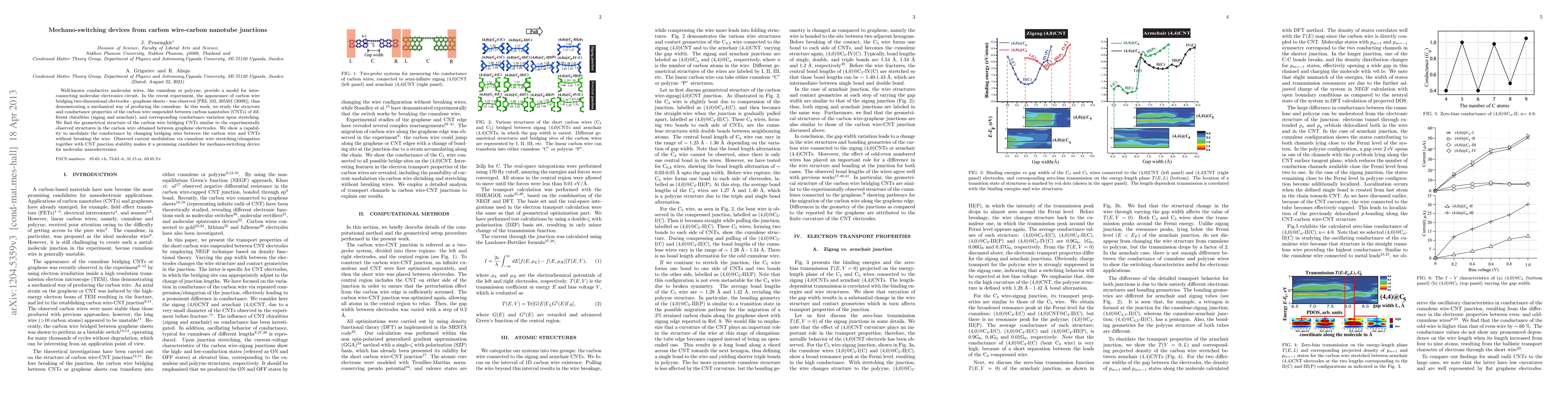 This research investigates the conductance properties of carbon wire junctions between carbon nanotubes of different chiralities, demonstrating a mechanical method to produce cumulene. The study finds that stretching the wire can modulate its conductance, making it a promising candidate for mechano-switching devices in molecular nanoelectronics.