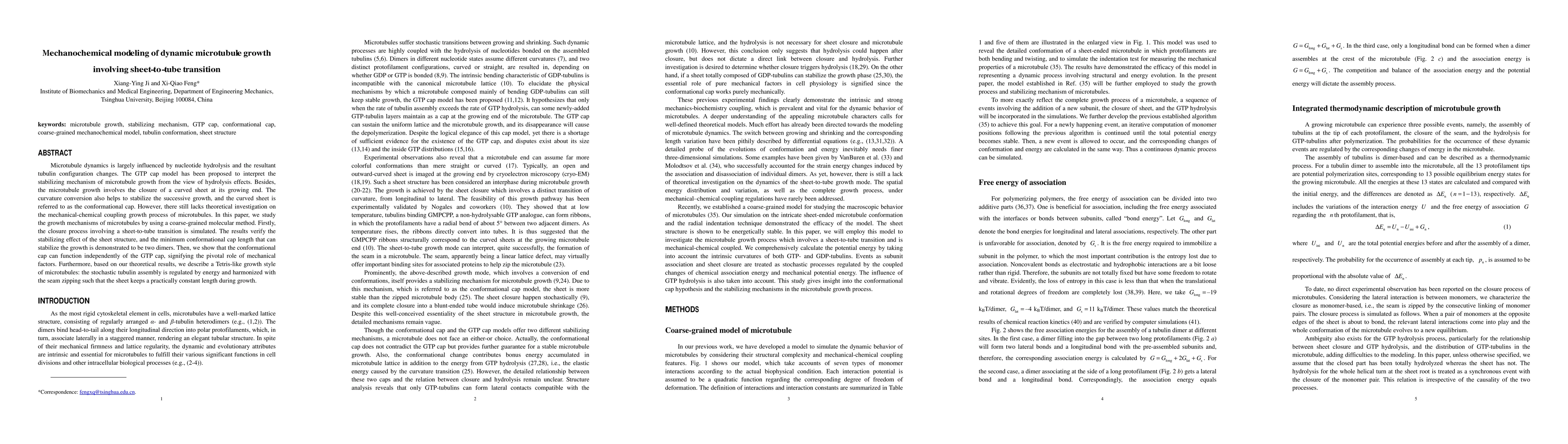 Microtubule dynamics is largely influenced by nucleotide hydrolysis and the resultant tubulin configuration changes. The GTP cap model has been proposed to interpret the stabilizing mechanism of microtubule growth from the view of hydrolysis effects. Besides, the microtubule growth involves the closure of a curved sheet at its growing end. The curvature conversion also helps to stabilize the successive growth, and the curved sheet is referred to as the conformational cap. However, there still lacks theoretical investigation on the mechanical-chemical coupling growth process of microtubules. In this paper, we study the growth mechanisms of microtubules by using a coarse-grained molecular method. Firstly, the closure process involving a sheet-to-tube transition is simulated. The results verify the stabilizing effect of the sheet structure, and the minimum conformational cap length that can stabilize the growth is demonstrated to be two dimers. Then, we show that the conformational cap can function independently of the GTP cap, signifying the pivotal role of mechanical factors. Furthermore, based on our theoretical results, we describe a Tetris-like growth style of microtubules: the stochastic tubulin assembly is regulated by energy and harmonized with the seam zipping such that the sheet keeps a practically constant length during growth.