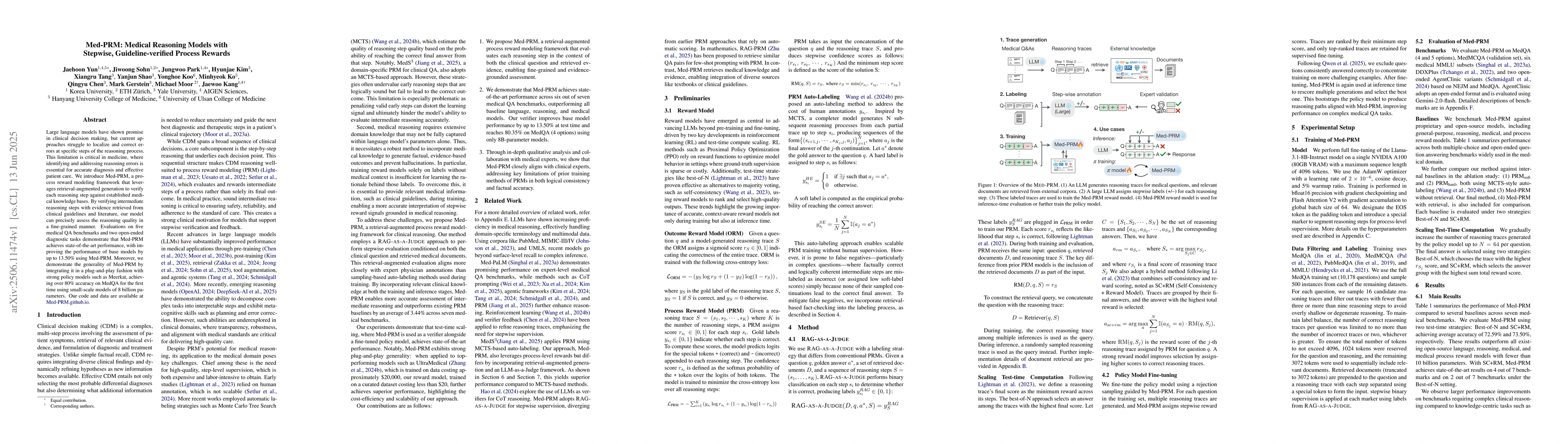 Large language models have shown promise in clinical decision making, but current approaches struggle to localize and correct errors at specific steps of the reasoning process. This limitation is critical in medicine, where identifying and addressing reasoning errors is essential for accurate diagnosis and effective patient care. We introduce Med-PRM, a process reward modeling framework that leverages retrieval-augmented generation to verify each reasoning step against established medical knowledge bases. By verifying intermediate reasoning steps with evidence retrieved from clinical guidelines and literature, our model can precisely assess the reasoning quality in a fine-grained manner. Evaluations on five medical QA benchmarks and two open-ended diagnostic tasks demonstrate that Med-PRM achieves state-of-the-art performance, with improving the performance of base models by up to 13.50% using Med-PRM. Moreover, we demonstrate the generality of Med-PRM by integrating it in a plug-and-play fashion with strong policy models such as Meerkat, achieving over 80\% accuracy on MedQA for the first time using small-scale models of 8 billion parameters. Our code and data are available at: https://med-prm.github.io/