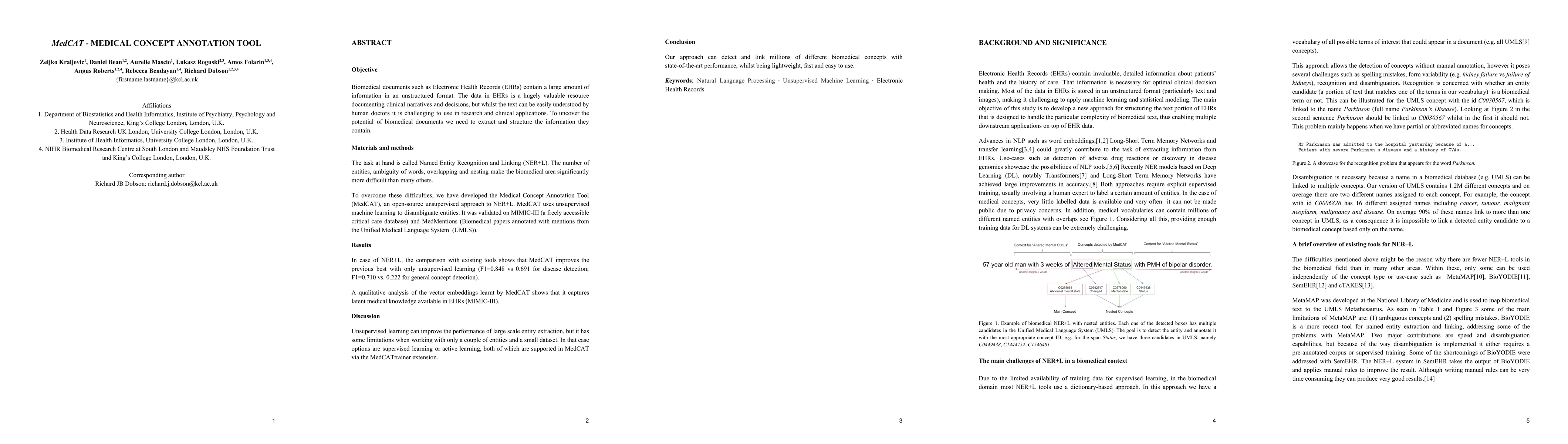 A new tool called MedCAT improves Named Entity Recognition and Linking in biomedical documents with high accuracy and ease of use, offering a lightweight solution for extracting valuable clinical information from Electronic Health Records.