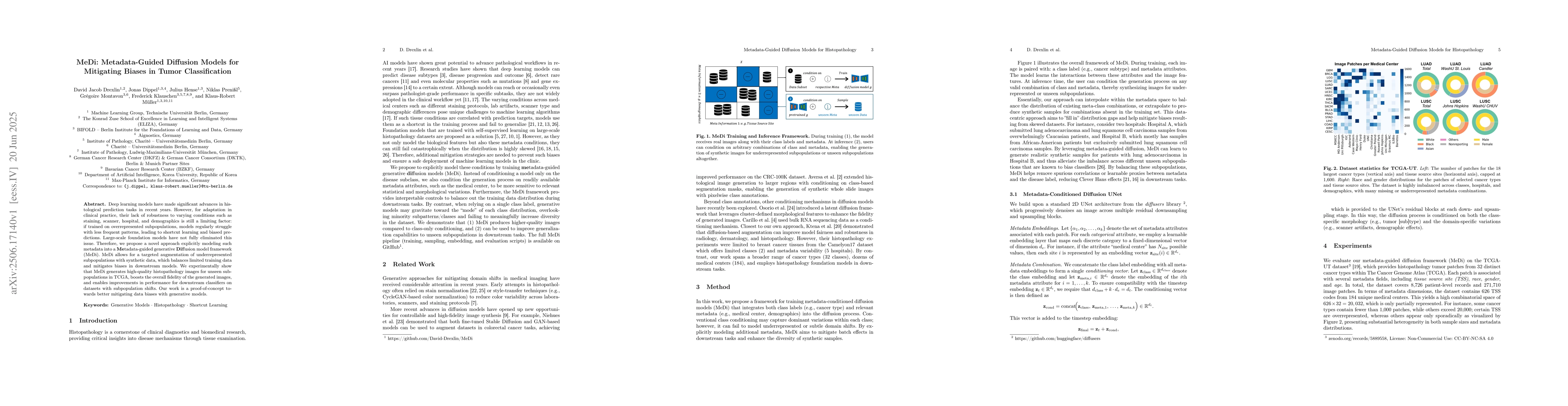 Deep learning models have made significant advances in histological prediction tasks in recent years. However, for adaptation in clinical practice, their lack of robustness to varying conditions such as staining, scanner, hospital, and demographics is still a limiting factor: if trained on overrepresented subpopulations, models regularly struggle with less frequent patterns, leading to shortcut learning and biased predictions. Large-scale foundation models have not fully eliminated this issue. Therefore, we propose a novel approach explicitly modeling such metadata into a Metadata-guided generative Diffusion model framework (MeDi). MeDi allows for a targeted augmentation of underrepresented subpopulations with synthetic data, which balances limited training data and mitigates biases in downstream models. We experimentally show that MeDi generates high-quality histopathology images for unseen subpopulations in TCGA, boosts the overall fidelity of the generated images, and enables improvements in performance for downstream classifiers on datasets with subpopulation shifts. Our work is a proof-of-concept towards better mitigating data biases with generative models.