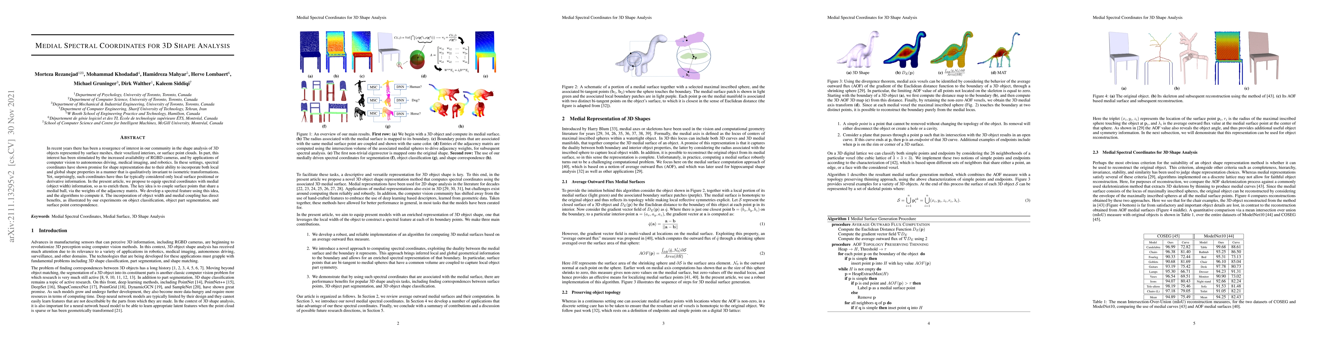 This paper proposes a novel method to enhance 3D shape analysis using medial spectral coordinates that incorporate object width information. The method couples surface points sharing a medial ball via adjacency matrix weights, improving shape representation and aiding in tasks like object classification and segmentation.