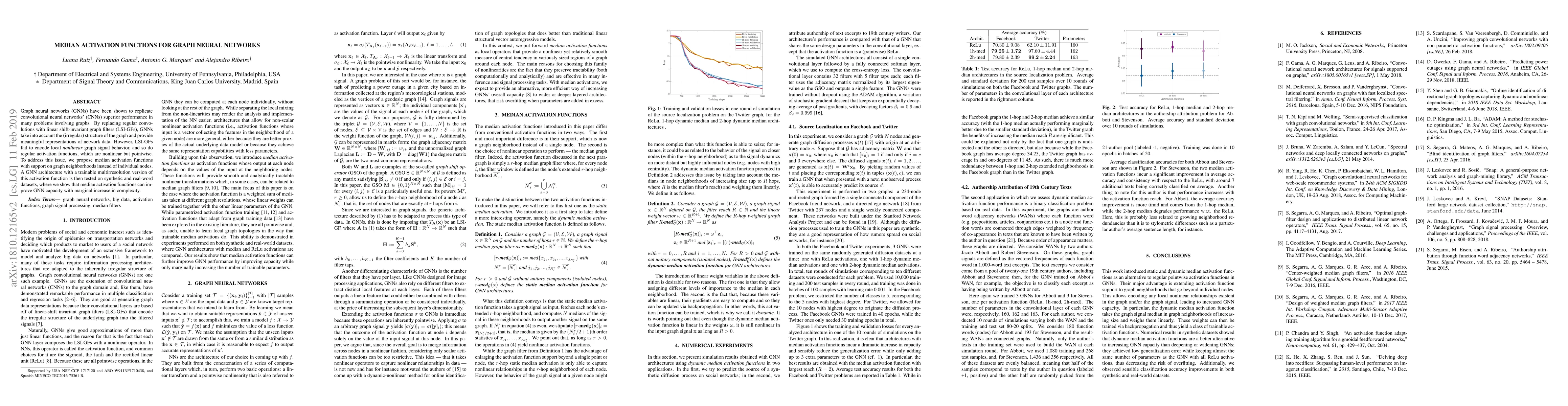 This paper proposes median activation functions for graph neural networks (GNNs) to better encode local nonlinear graph signal behavior. The study demonstrates that these functions, supported on graph neighborhoods, enhance GNN performance on synthetic and real-world datasets with minimal additional complexity.