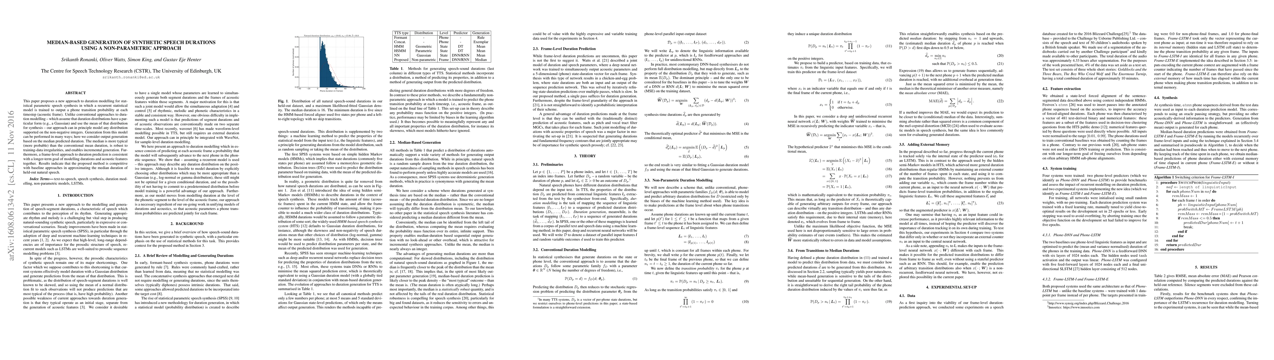 This paper proposes a new approach to duration modelling for statistical parametric speech synthesis in which a recurrent statistical model is trained to output a phone transition probability at each timestep (acoustic frame). Unlike conventional approaches to duration modelling -- which assume that duration distributions have a particular form (e.g., a Gaussian) and use the mean of that distribution for synthesis -- our approach can in principle model any distribution supported on the non-negative integers. Generation from this model can be performed in many ways; here we consider output generation based on the median predicted duration. The median is more typical (more probable) than the conventional mean duration, is robust to training-data irregularities, and enables incremental generation. Furthermore, a frame-level approach to duration prediction is consistent with a longer-term goal of modelling durations and acoustic features together. Results indicate that the proposed method is competitive with baseline approaches in approximating the median duration of held-out natural speech.