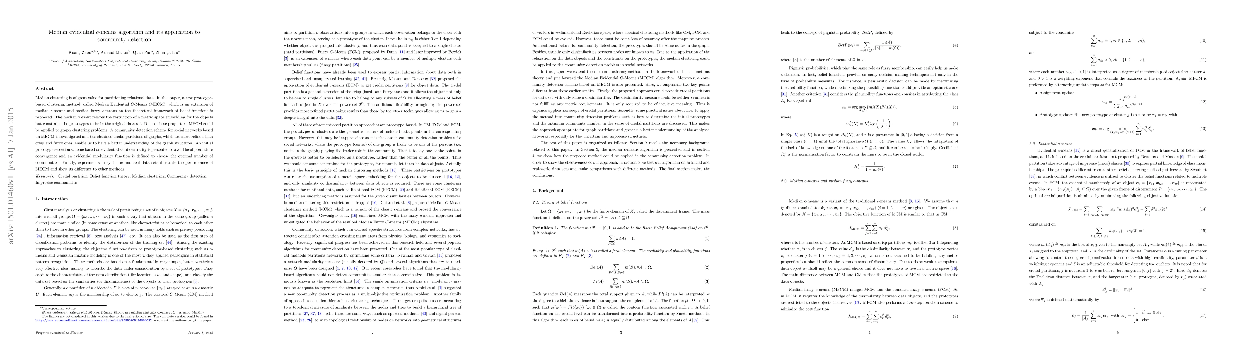 This paper introduces the Median Evidential C-Means (MECM) algorithm, an extension of median clustering methods, for graph clustering and community detection in social networks. The proposed method avoids metric space constraints and provides refined credal partitions, outperforming crisp and fuzzy clustering methods.