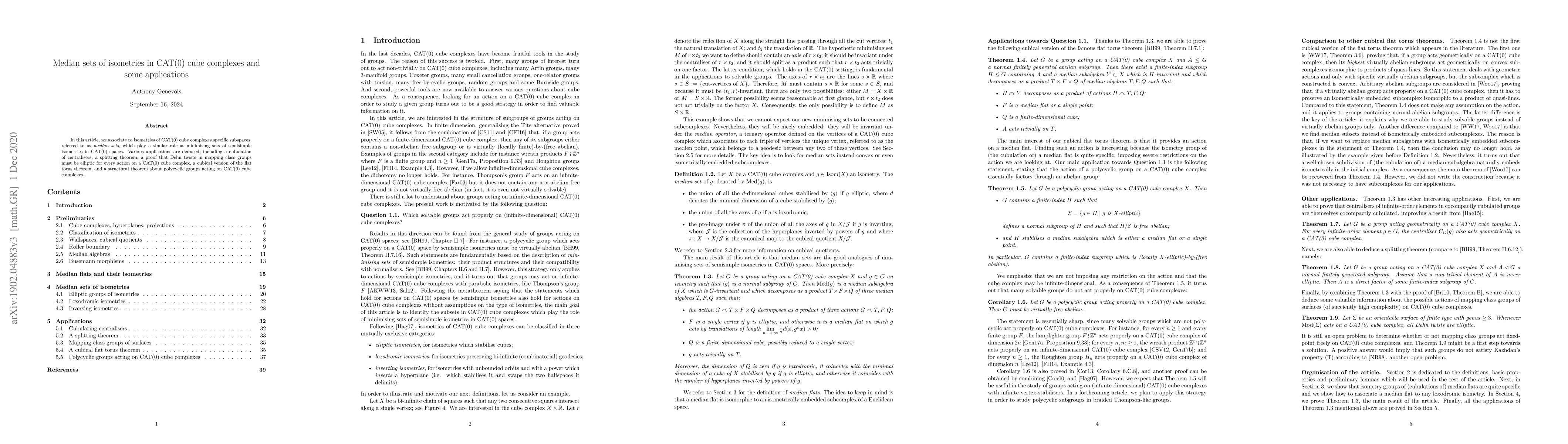 This paper introduces median sets associated with isometries in CAT(0) cube complexes, analogous to minimizing sets in CAT(0) spaces, and applies this concept to derive significant results including cubulation of centralizers, a splitting theorem, and structural theorems for polycyclic groups.