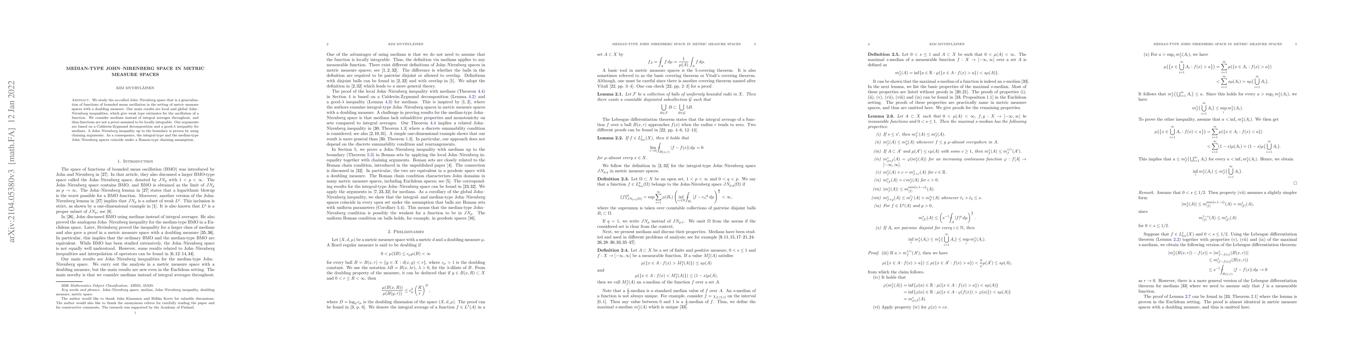 This paper generalizes John-Nirenberg spaces to metric measure spaces, focusing on median-type inequalities instead of integral averages. It establishes local and global John-Nirenberg inequalities, proving that integral-type and median-type John-Nirenberg spaces coincide under a specific chaining assumption.