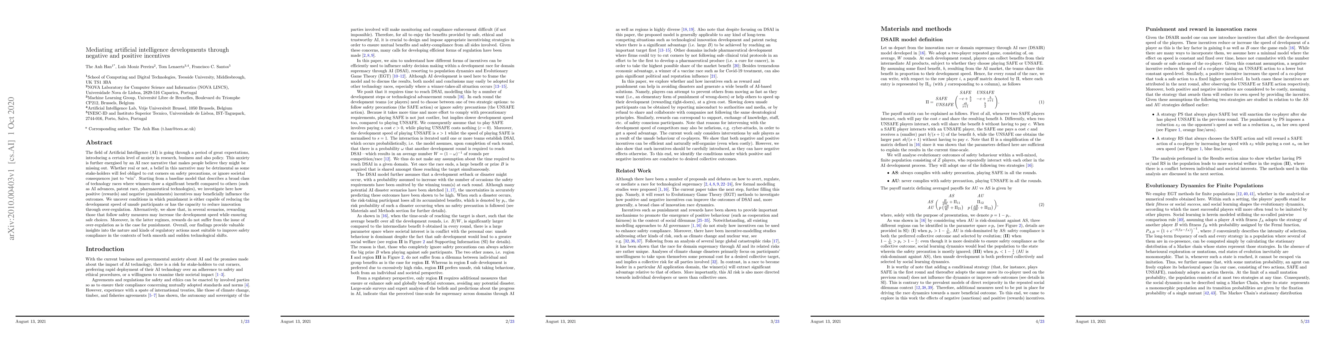 The field of Artificial Intelligence (AI) is going through a period of great expectations, introducing a certain level of anxiety in research, business and also policy. This anxiety is further energised by an AI race narrative that makes people believe they might be missing out. Whether real or not, a belief in this narrative may be detrimental as some stake-holders will feel obliged to cut corners on safety precautions, or ignore societal consequences just to "win". Starting from a baseline model that describes a broad class of technology races where winners draw a significant benefit compared to others (such as AI advances, patent race, pharmaceutical technologies), we investigate here how positive (rewards) and negative (punishments) incentives may beneficially influence the outcomes. We uncover conditions in which punishment is either capable of reducing the development speed of unsafe participants or has the capacity to reduce innovation through over-regulation. Alternatively, we show that, in several scenarios, rewarding those that follow safety measures may increase the development speed while ensuring safe choices. Moreover, in {the latter} regimes, rewards do not suffer from the issue of over-regulation as is the case for punishment. Overall, our findings provide valuable insights into the nature and kinds of regulatory actions most suitable to improve safety compliance in the contexts of both smooth and sudden technological shifts.