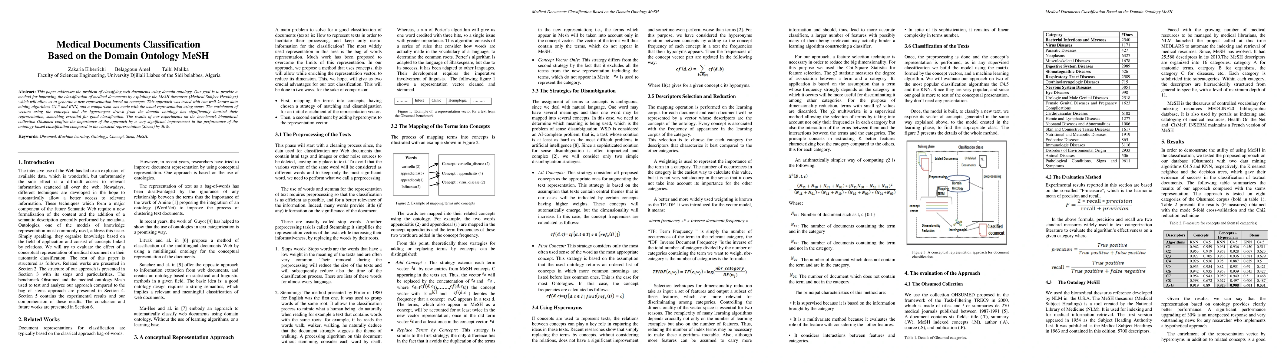 The paper introduces a novel method for medical document classification by leveraging concepts and hyperonyms from the MeSH thesaurus, significantly improving classification performance.