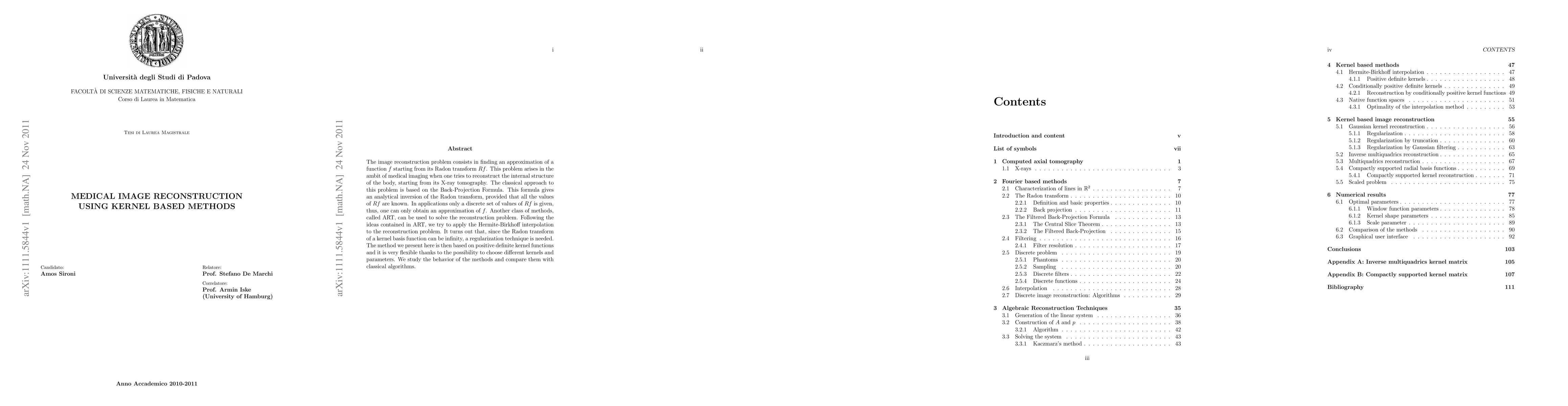 Researchers developed a method for medical image reconstruction using kernel-based methods, which can approximate the internal structure of the body from X-ray tomography data, offering flexibility with different kernels and parameters.