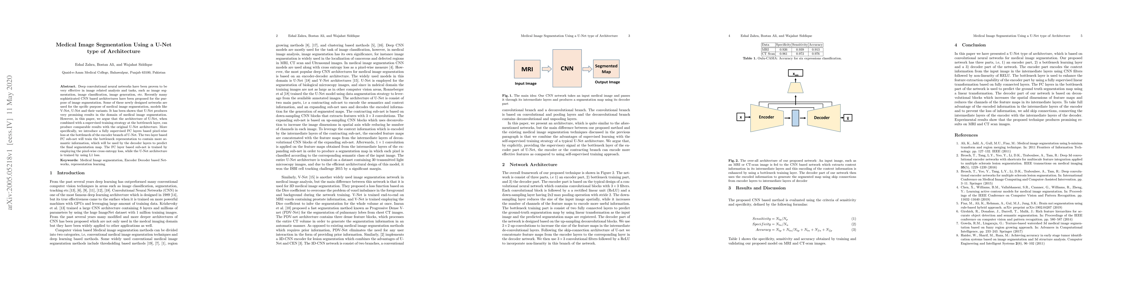 The research proposes a U-Net type architecture for medical image segmentation, enhancing the encoder part by introducing a fully supervised FC layers-based pixel-wise loss at the bottleneck, trained with pixel-wise cross-entropy loss.