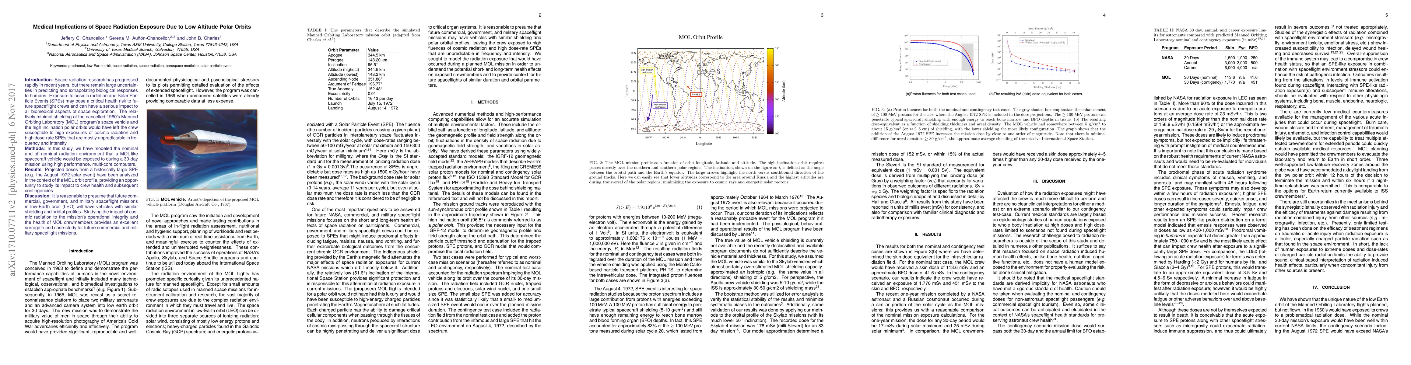 Space radiation research has progressed rapidly in recent years, but there remain large uncertainties in predicting and extrapolating biological responses to humans. Exposure to cosmic radiation and Solar Particle Events may pose a critical health risk to future spaceflight crews and can have a serious impact to all biomedical aspects of space exploration. The relatively minimal shielding of the cancelled 1960's Manned Orbiting Laboratory program's space vehicle and the high inclination polar orbits would have left the crew susceptible to high exposures of cosmic radiation and high dose-rate SPEs that are mostly unpredictable in frequency and intensity. In this study, we have modeled the nominal and off-nominal radiation environment that a MOL-like spacecraft vehicle would be exposed to during a 30-day mission using high performance, multi-core computers. Projected doses from a historically large SPE (e.g. the August 1972 solar event) have been analyzed in the context of the MOL orbit profile, providing an opportunity to study its impact to crew health and subsequent contingencies.It is reasonable to presume that future commercial, government, and military spaceflight missions in low-Earth orbit will have vehicles with similar shielding and orbital profiles. Studying the impact of cosmic radiation to the mission's operational integrity and the health of MOL crewmembers provides an excellent surrogate and case-study for future commercial and military spaceflight missions.