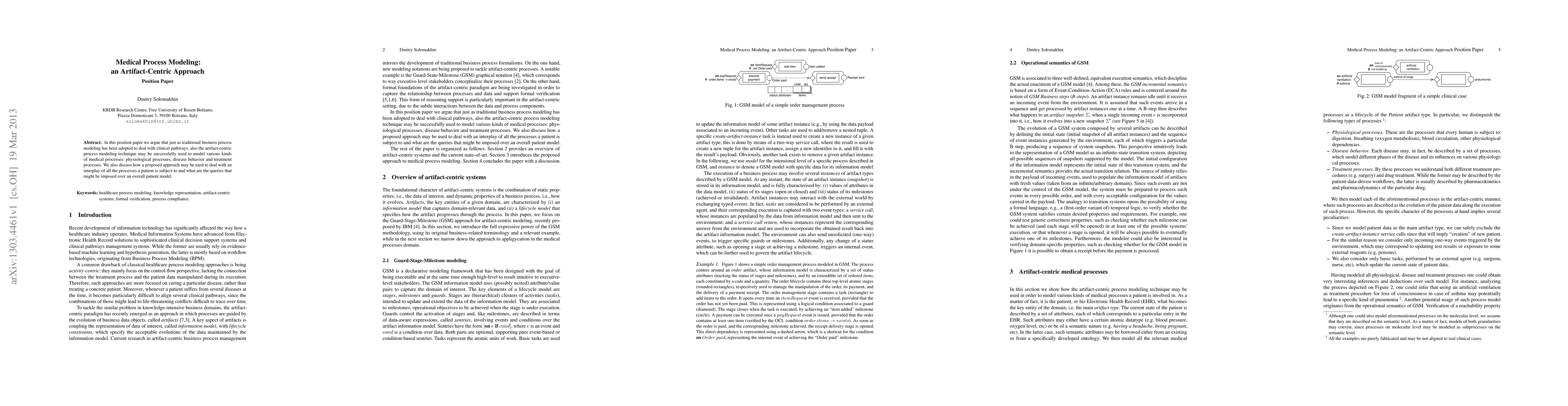 This paper proposes an artifact-centric approach to model various medical processes, including physiological and disease behavior, and treatment. It discusses how this method can handle the interplay of multiple processes affecting a patient and the types of queries that can be performed on the comprehensive patient model.