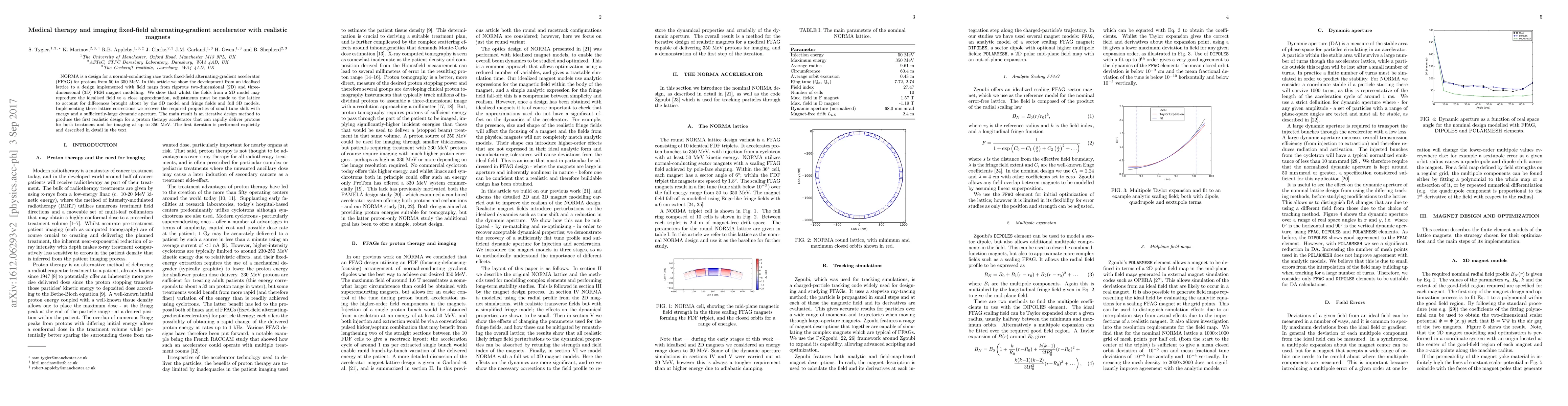 Researchers developed a design for a proton accelerator using realistic magnet simulations, enabling rapid delivery of protons for treatment and imaging at high energies. The design improves upon idealized models with lattice corrections, achieving desired properties such as small tune shift and dynamic aperture.
