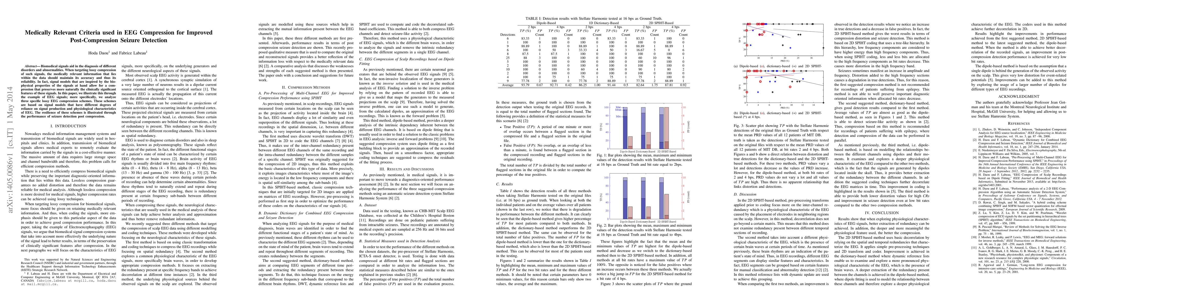 This paper explores lossy EEG compression schemes that preserve clinically significant features through signal models inspired by biological properties. It evaluates the performance of these schemes for post-compression seizure detection.