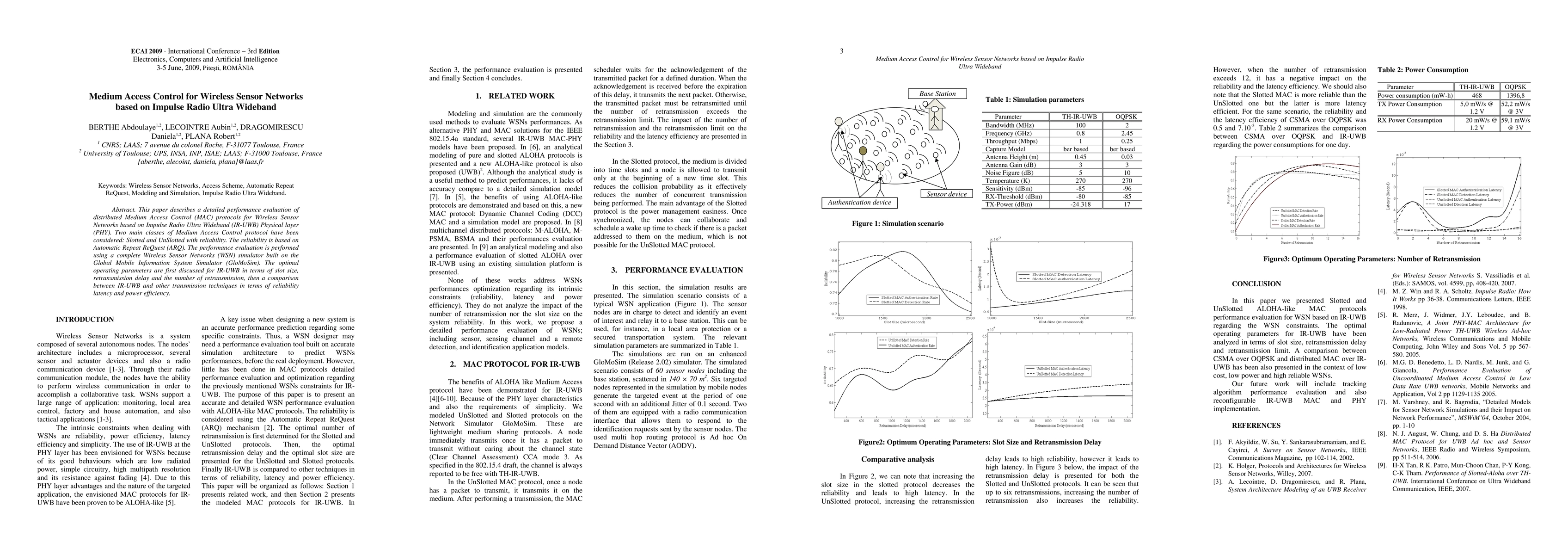 This paper evaluates distributed MAC protocols for IR-UWB-based Wireless Sensor Networks, focusing on slotted and unslotted approaches with ARQ-based reliability. Performance is assessed using a WSN simulator, comparing IR-UWB to other techniques in terms of reliability latency and power efficiency.