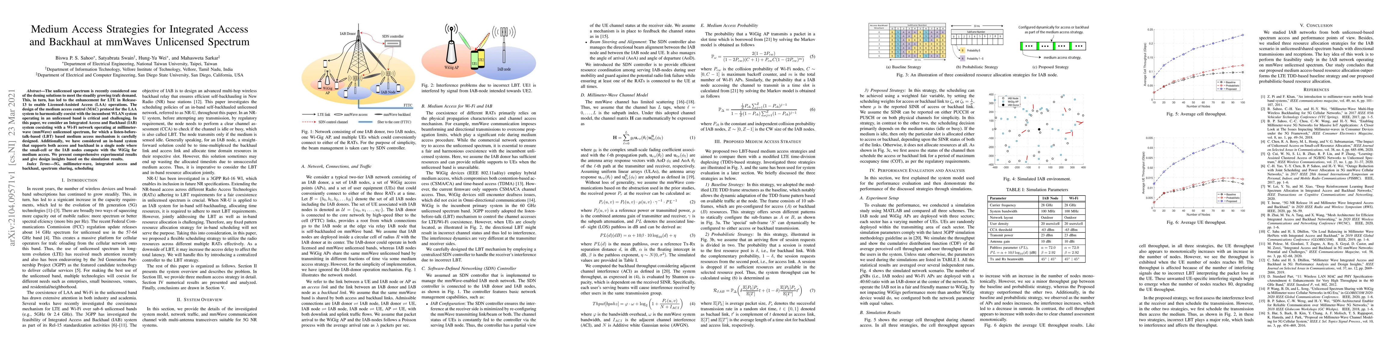 The unlicensed spectrum is recently considered one of the defining solutions to meet the steadily growing traffic demand. This, in turn, has led to the enhancement for LTE in Release-13 to enable Licensed-Assisted Access (LAA) operations. The design of the medium access control (MAC) protocol for the LAA system to harmonically coexist with the incumbent WLAN system operating in an unlicensed band is critical and challenging. In this paper, we consider an Integrated Access and Backhaul (IAB) system coexisting with a Wi-Fi network operating at millimeter-wave (mmWave) unlicensed spectrum, for which a listen-before-talk-based (LBT) based medium access mechanism is carefully designed. Additionally, we have considered an in-band system that supports both access and backhaul in a single node where the small-cell or the IAB nodes compete with the WiGig for medium access. We present comprehensive experimental results and give design insights based on the simulation results.