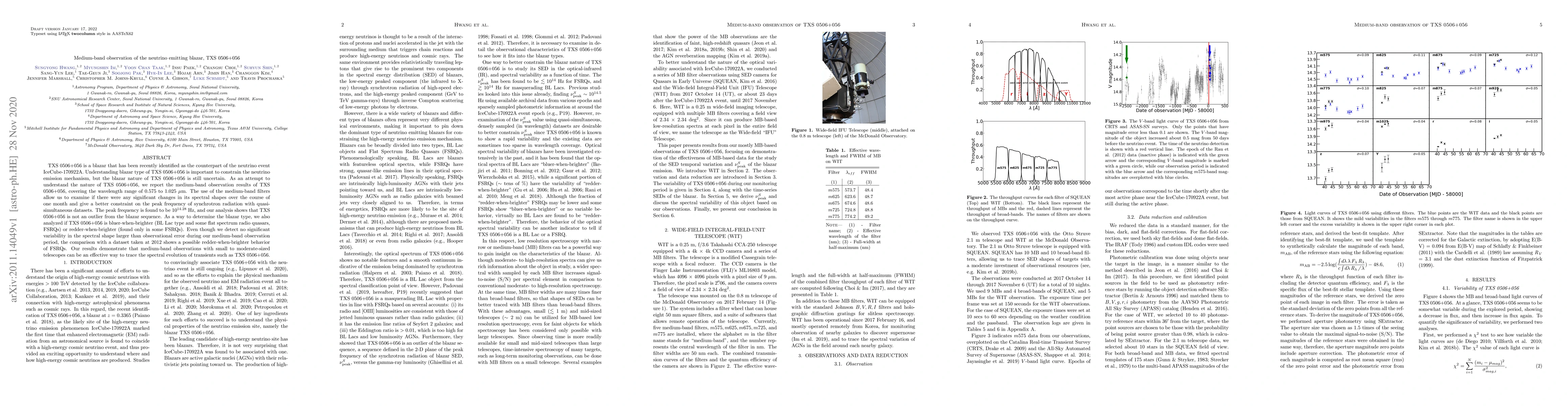 This paper reports medium-band observations of the blazar TXS 0506+056, identifying it as a flat spectrum radio quasar (FSRQ) based on its spectral behavior over a month. The study suggests that TXS 0506+056 exhibits a redder-when-brighter trend, supporting its classification within the blazar sequence.