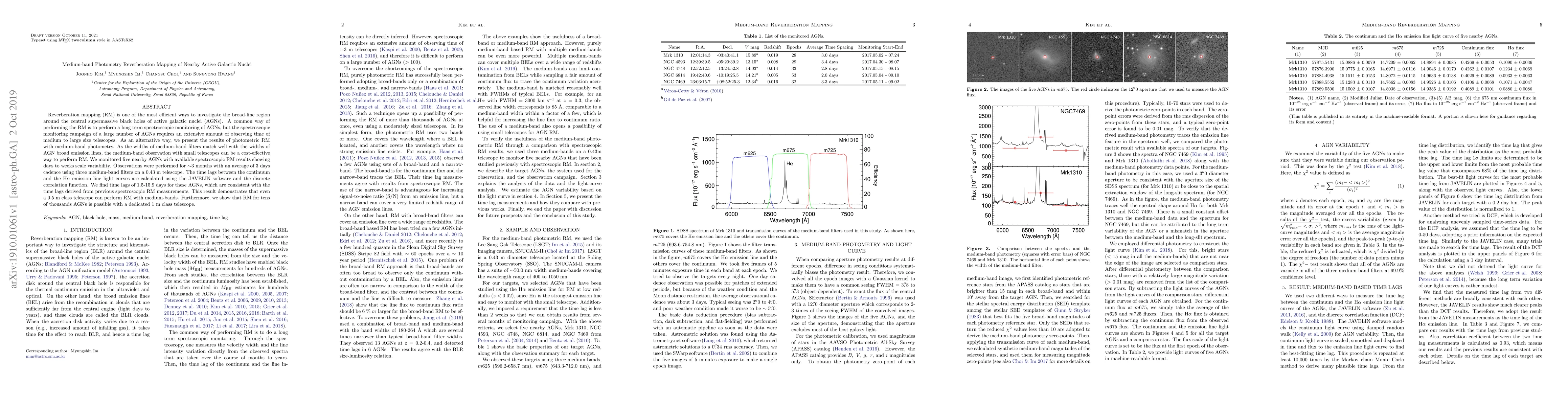This study demonstrates the feasibility of medium-band photometry for reverberation mapping of nearby active galactic nuclei (AGNs) using small telescopes, yielding time lags consistent with spectroscopic methods. The results suggest that a 0.5 m telescope can perform effective RM, and a 1 m class telescope could enable RM for tens of thousands of AGNs.