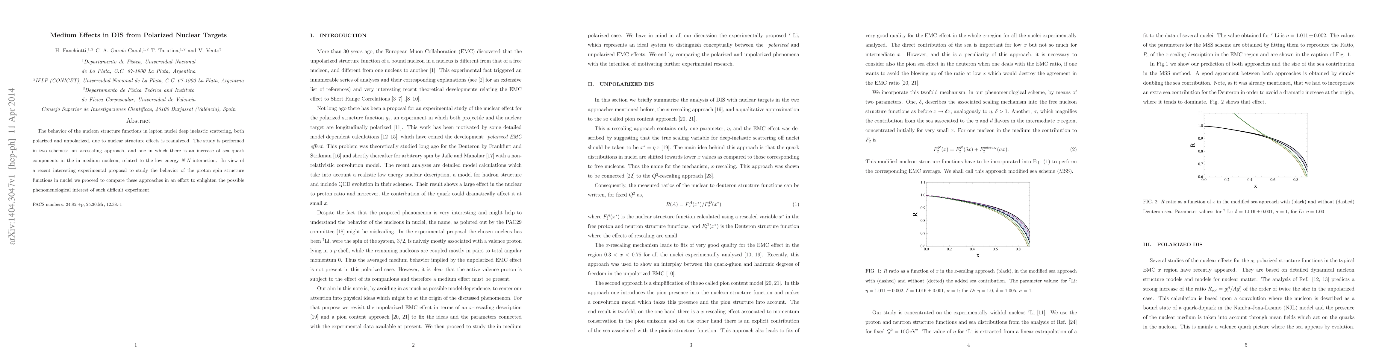 The behavior of the nucleon structure functions in lepton nuclei deep inelastic scattering, both polarized and unpolarized, due to nuclear structure effects is reanalyzed. The study is performed in two schemes: an x-rescaling approach, and one in which there is an increase of sea quark components in the in medium nucleon, related to the low energy N-N interaction. In view of a recent interesting experimental proposal to study the behavior of the proton spin structure functions in nuclei we proceed to compare these approaches in an effort to enlighten the possible phenomenological interest of such difficult experiment.
