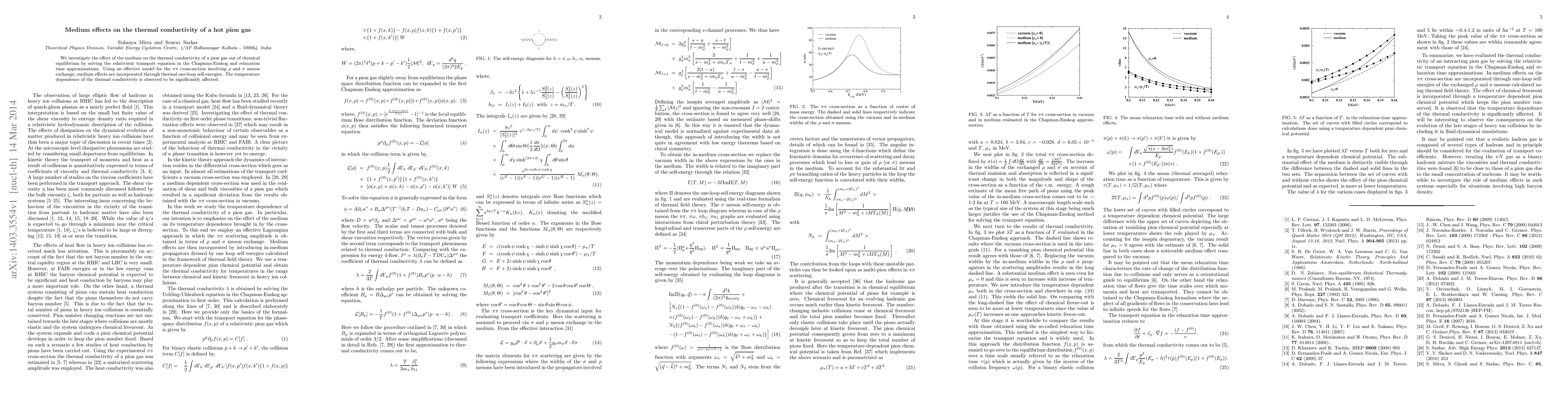 This study examines the influence of the medium on the thermal conductivity of a hot pion gas out of chemical equilibrium, revealing significant temperature dependence through relativistic transport equations and effective models for meson exchange.