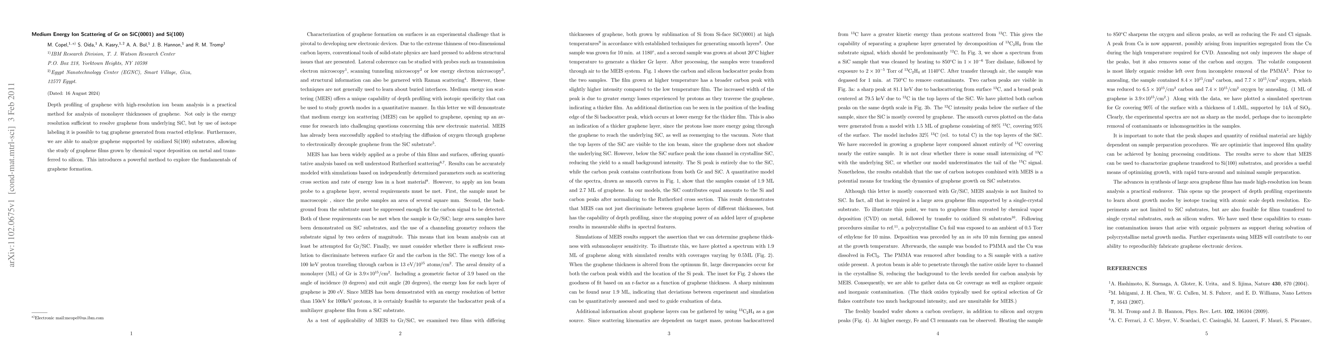 Depth profiling of graphene with high-resolution ion beam analysis is a practical method for analysis of monolayer thicknesses of graphene. Not only is the energy resolution sufficient to resolve graphene from underlying SiC, but by use of isotope labeling it is possible to tag graphene generated from reacted ethylene. Furthermore, we are able to analyze graphene supported by oxidized Si(100) substrates, allowing the study of graphene films grown by chemical vapor deposition on metal and transfered to silicon. This introduces a powerful method to explore the fundamentals of graphene formation.