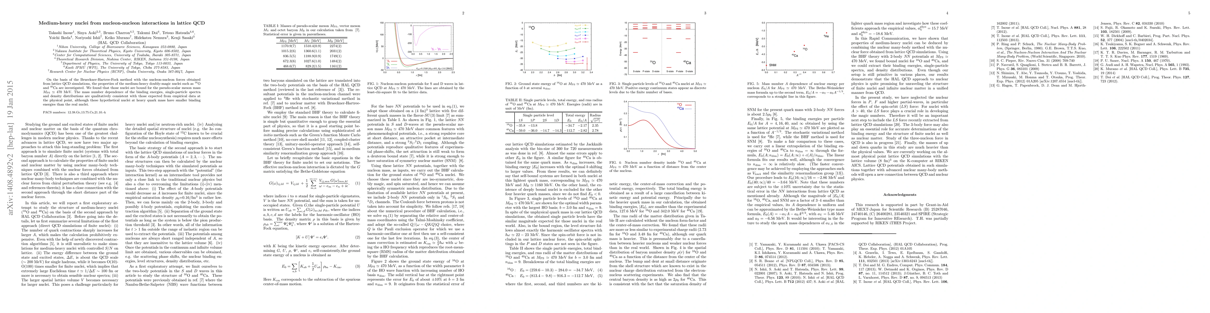 This paper investigates the properties of medium-heavy doubly-magic nuclei like 16^O and 40^Ca using nucleon-nucleon forces derived from lattice QCD simulations. It finds that these nuclei are bound under specific conditions, showing qualitative consistency with empirical data despite having smaller binding energies.