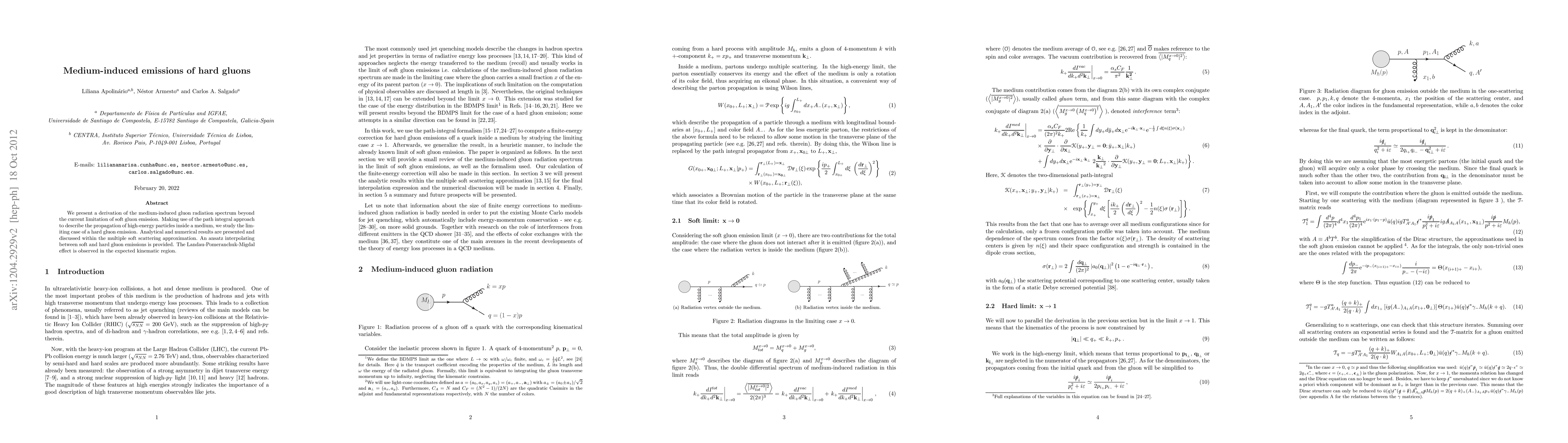 We present a derivation of the medium-induced gluon radiation spectrum beyond the current limitation of soft gluon emission. Making use of the path integral approach to describe the propagation of high-energy particles inside a medium, we study the limiting case of a hard gluon emission. Analytical and numerical results are presented and discussed within the multiple soft scattering approximation. An ansatz interpolating between soft and hard gluon emissions is provided. The Landau-Pomeranchuk-Migdal effect is observed in the expected kinematic region.