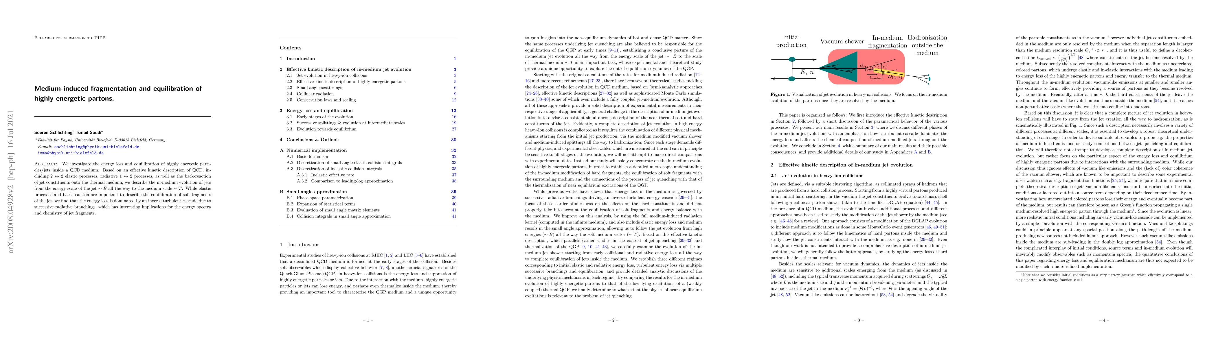 This research explores the energy loss and equilibration of high-energy particles (jets) within a QCD medium. Utilizing an effective kinetic QCD description, incorporating 2↔2 elastic, 1↔2 radiative processes, and jet constituent back-reaction on the medium, the study examines jet evolution from jet energy scale to medium temperature scale. Key findings indicate that while elastic processes and back-reaction aid in equilibrating soft jet fragments, energy loss is primarily driven by an inverse turbulent cascade from radiative branchings, impacting the energy spectra and composition of jet fragments.