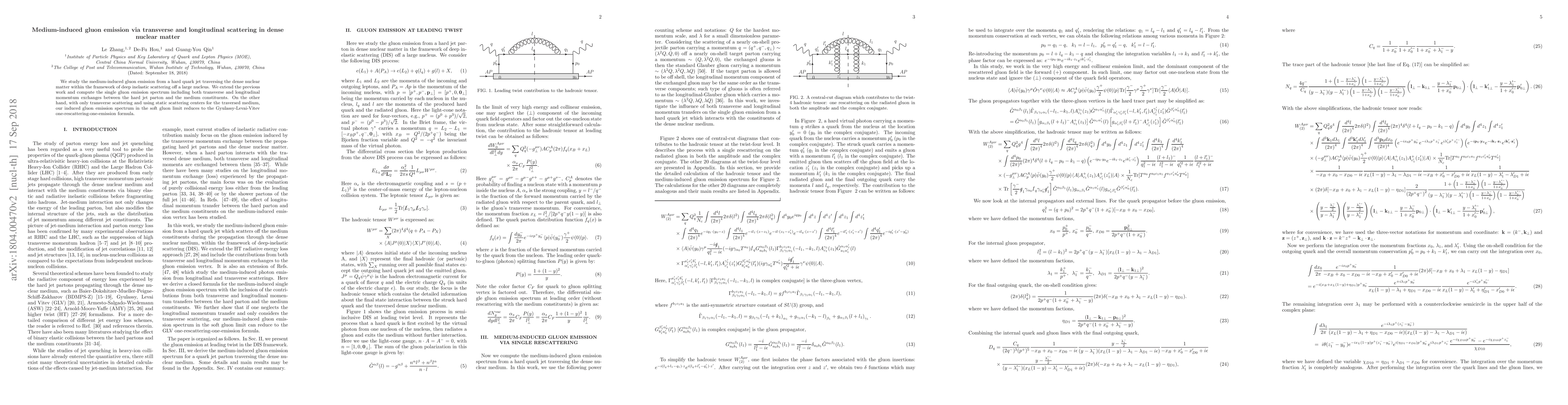 This paper investigates medium-induced gluon emission from a high-energy quark jet passing through dense nuclear matter, focusing on both transverse and longitudinal momentum exchanges. It extends previous work to include both types of scattering, and shows that in the soft gluon limit, the results align with the Gyulassy-Levai-Vitev formula when only transverse scattering is considered.