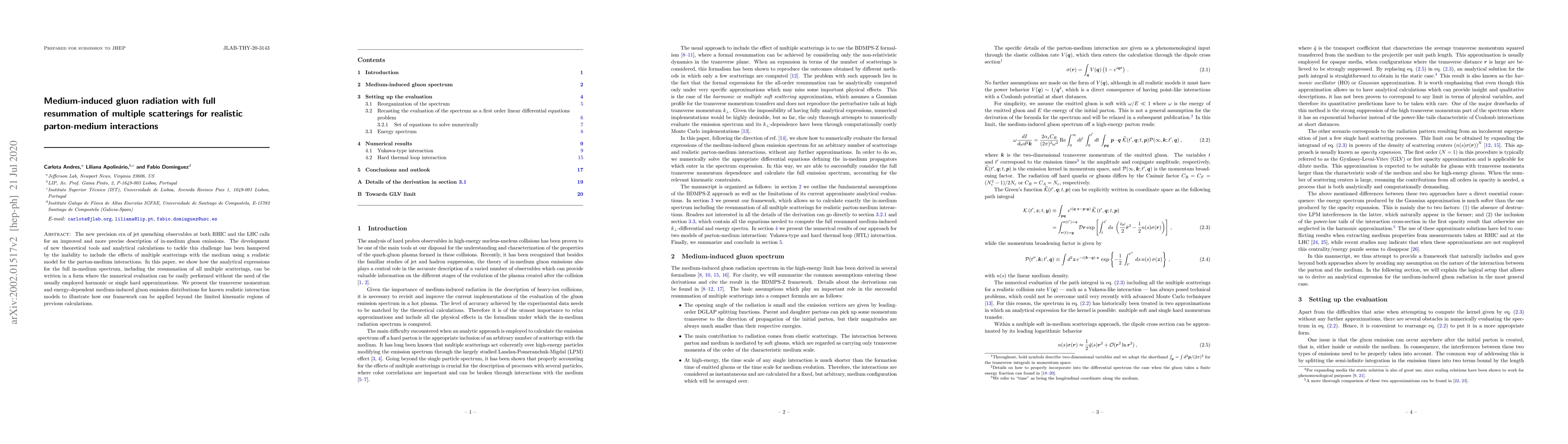 The new precision era of jet quenching observables at both RHIC and the LHC calls for an improved and more precise description of in-medium gluon emissions. The development of new theoretical tools and analytical calculations to tackle this challenge has been hampered by the inability to include the effects of multiple scatterings with the medium using a realistic model for the parton-medium interactions. In this paper, we show how the analytical expressions for the full in-medium spectrum, including the resummation of all multiple scatterings, can be written in a form where the numerical evaluation can be easily performed without the need of the usually employed harmonic or single hard approximations. We present the transverse momentum and energy-dependent medium-induced gluon emission distributions for known realistic interaction models to illustrate how our framework can be applied beyond the limited kinematic regions of previous calculations.