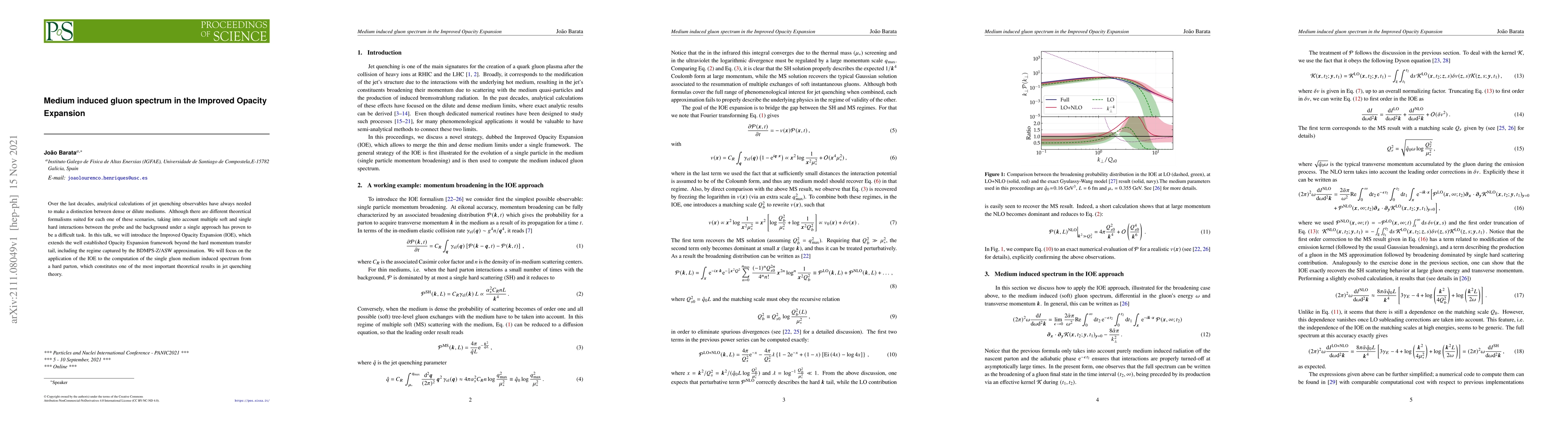 Over the last decades, analytical calculations of jet quenching observables have always needed to make a distinction between dense or dilute mediums. Although there are different theoretical formalisms suited for each one of these scenarios, taking into account multiple soft and single hard interactions between the probe and the background under a single approach has proven to be a difficult task. In this talk, we will introduce the Improved Opacity Expansion (IOE), which extends the well established Opacity Expansion framework beyond the hard momentum transfer tail, including the regime captured by the BDMPS-Z/ASW approximation. We will focus on the application of the IOE to the computation of the single gluon medium induced spectrum from a hard parton, which constitutes one of the most important theoretical results in jet quenching theory.