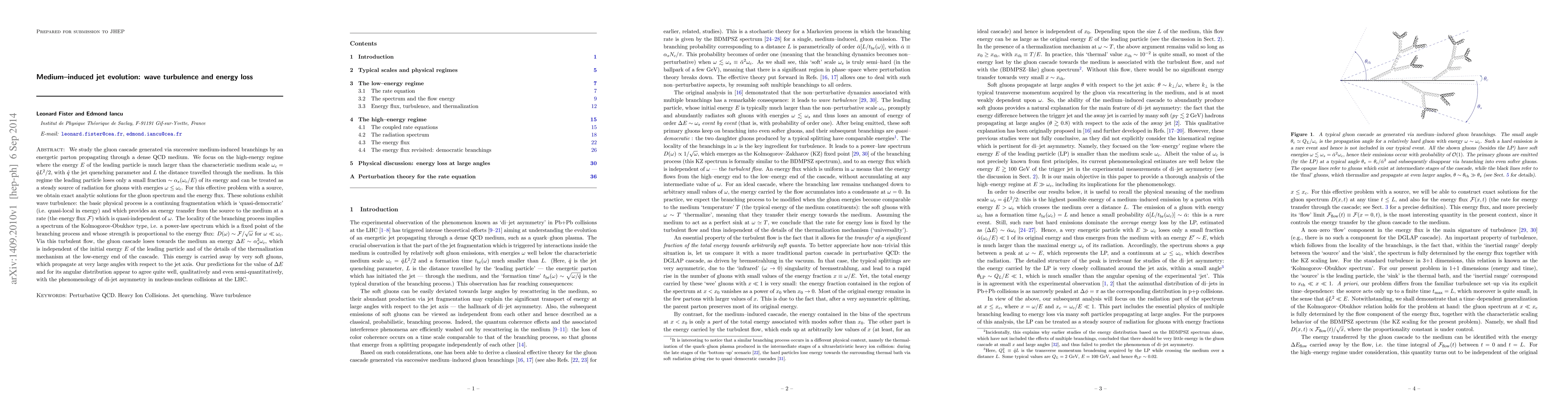 This paper investigates the gluon cascade from an energetic parton traversing a dense QCD medium, revealing wave turbulence and energy loss via quasi-democratic fragmentation. The study predicts a power-law spectrum and energy flux independent of initial energy, matching di-jet asymmetry observations in LHC collisions.