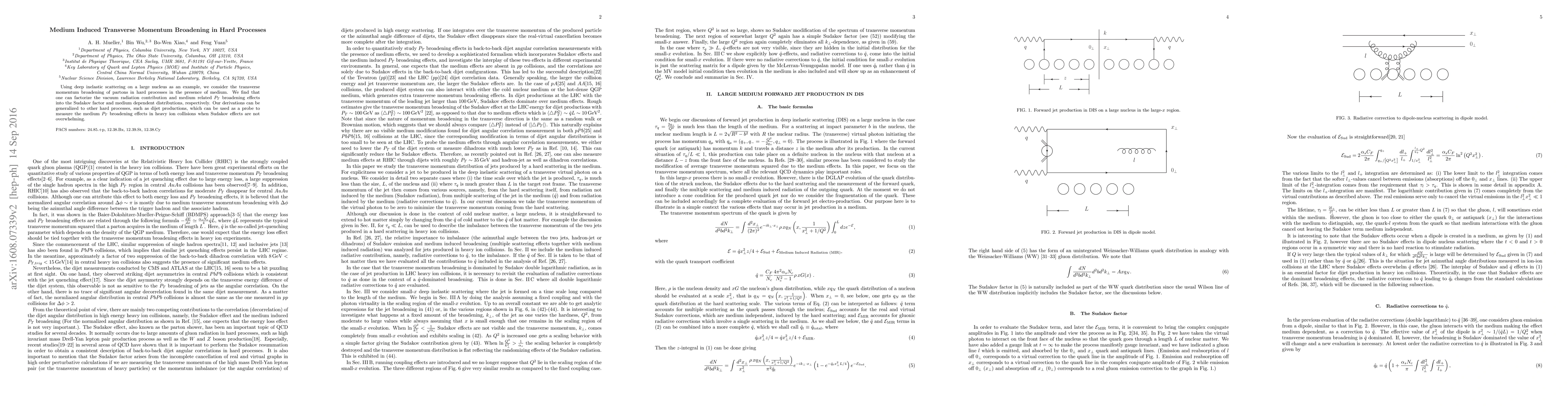 Using deep inelastic scattering on a large nucleus as an example, we consider the transverse momentum broadening of partons in hard processes in the presence of medium. We find that one can factorize the vacuum radiation contribution and medium related $P_T$ broadening effects into the Sudakov factor and medium dependent distributions, respectively. Our derivations can be generalized to other hard processes, such as dijet productions, which can be used as a probe to measure the medium $P_T$ broadening effects in heavy ion collisions when Sudakov effects are not overwhelming.